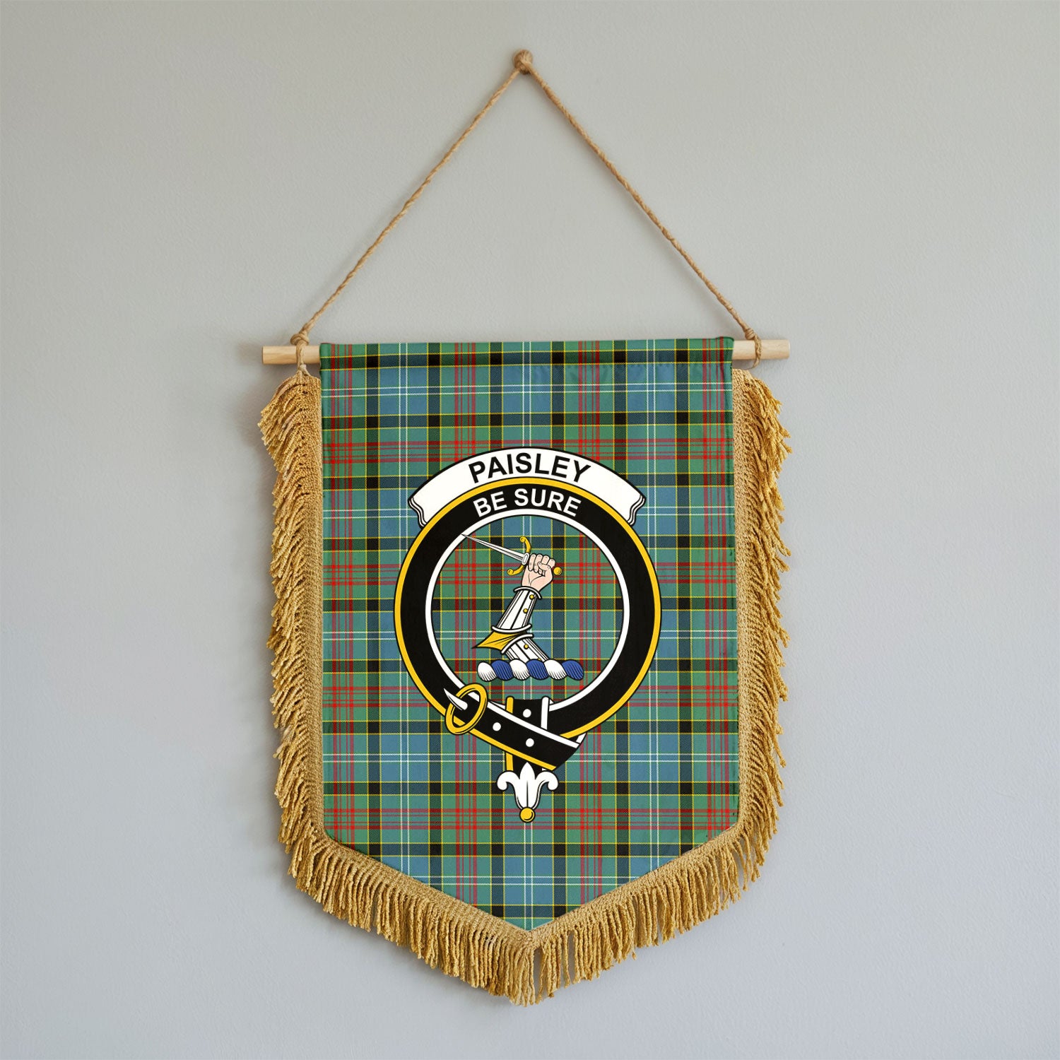 Paisley District Tartan Crest Wall Hanging Banner - Wood Pole