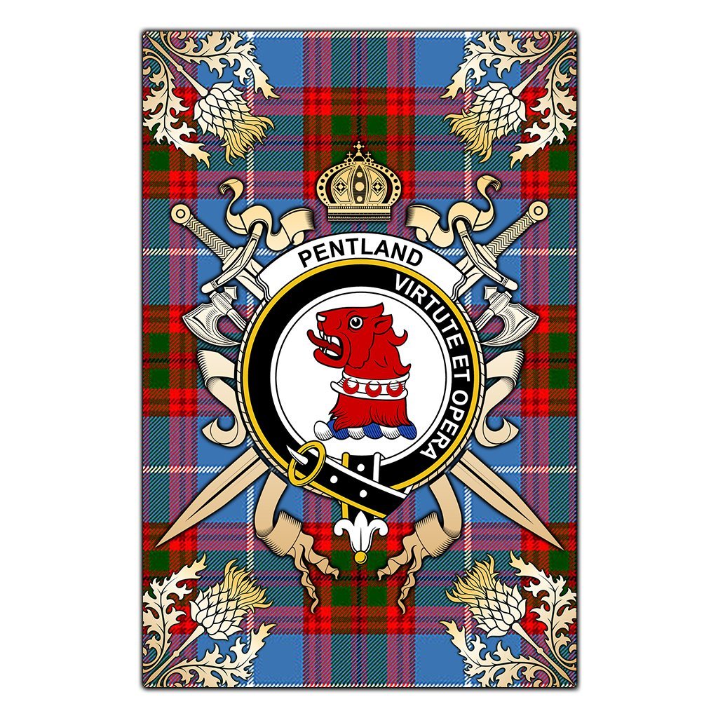 Pentland Tartan Crest Black Garden Flag - Gold Thistle Style