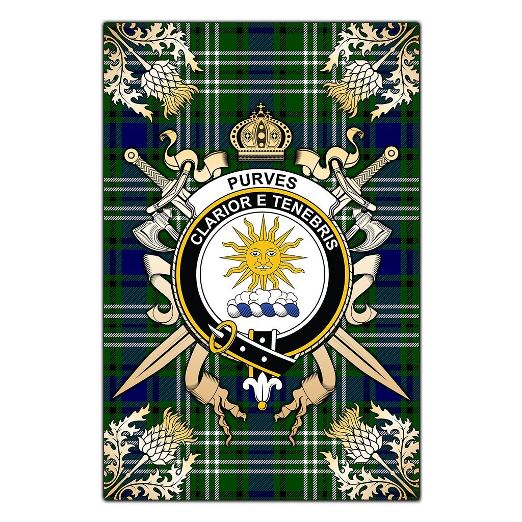 Purves Tartan Crest Black Garden Flag - Gold Thistle Style