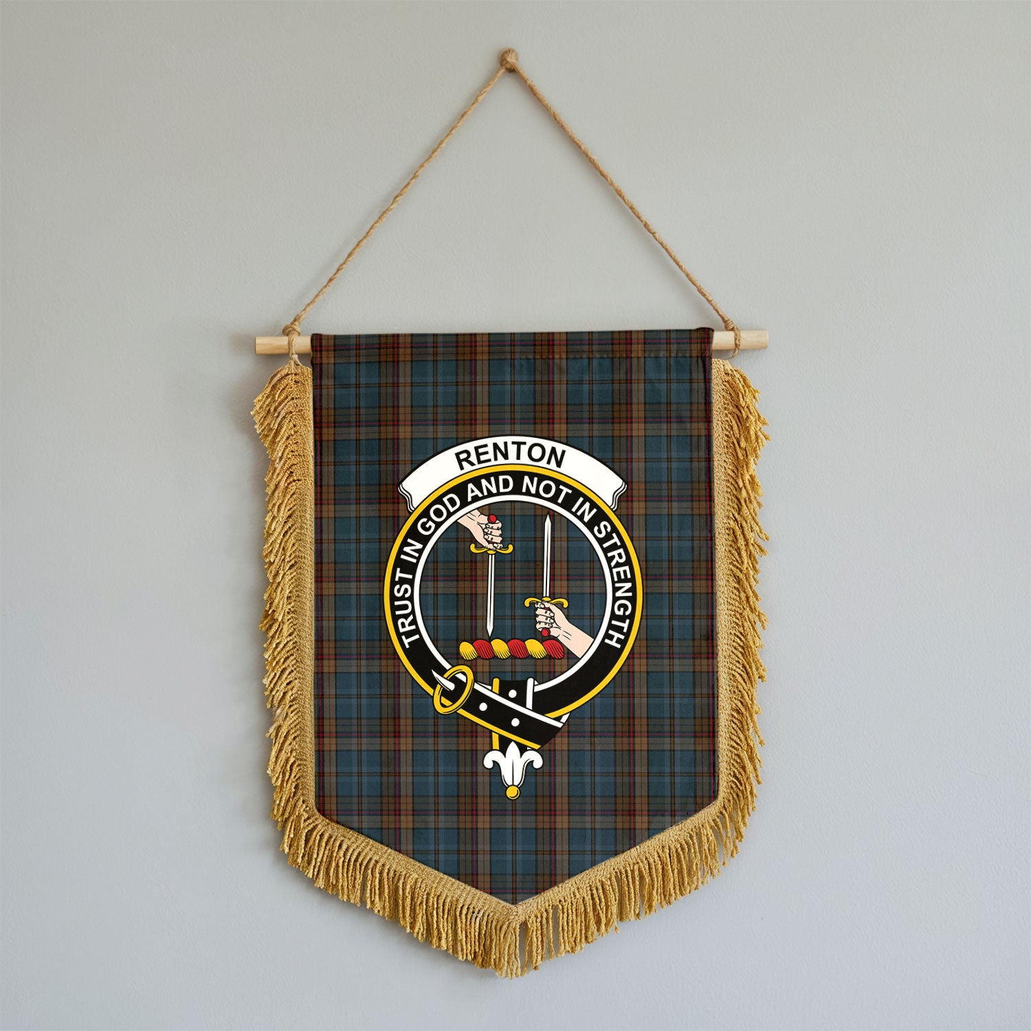 Renton Tartan Crest Wall Hanging Banner - Wood Pole