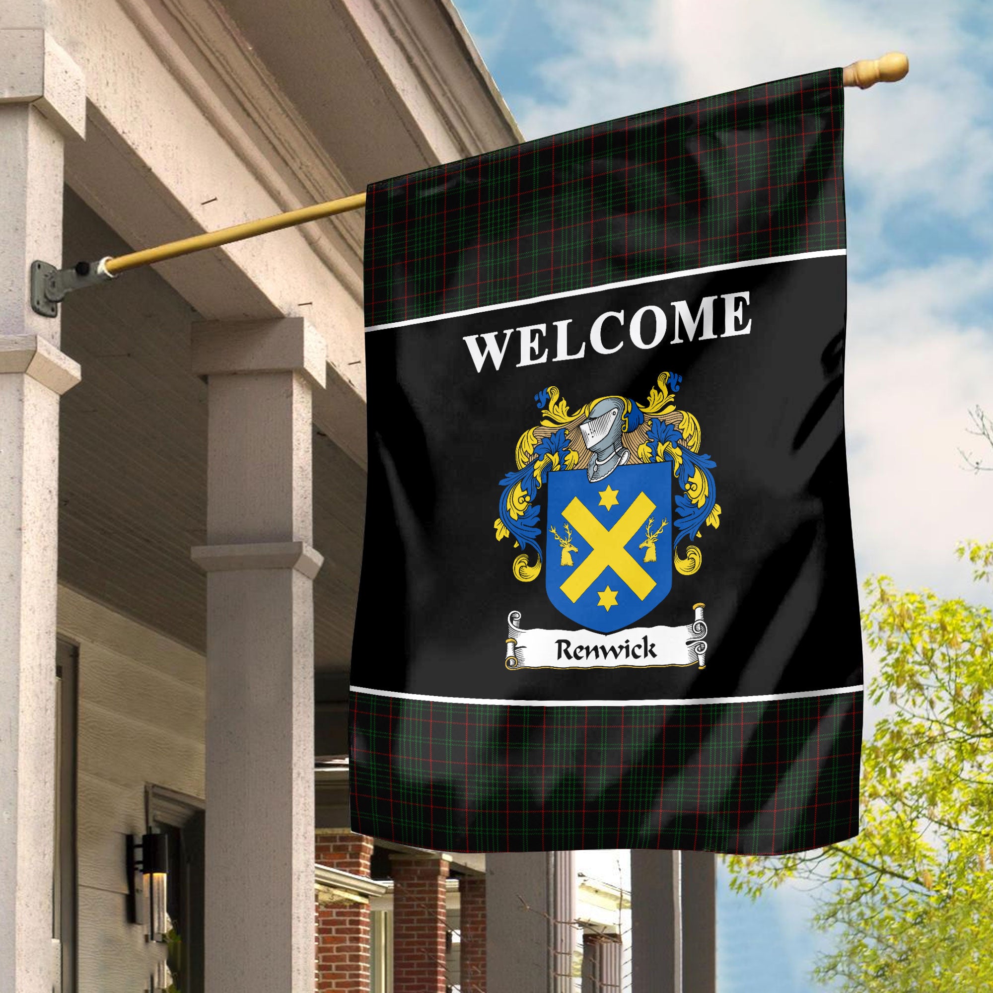 Renwick Tartan Crest Black Garden Flag