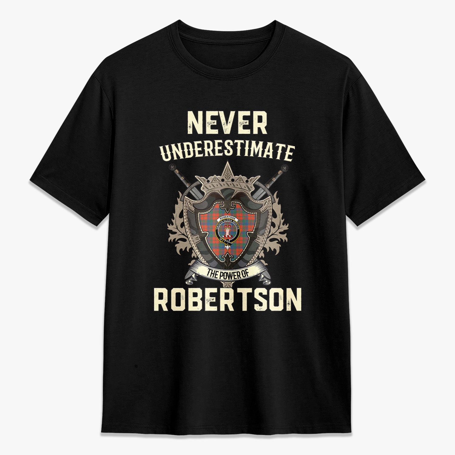 Robertson Ancient Tartan Crest 2D T-shirt - Never Underestimate Style