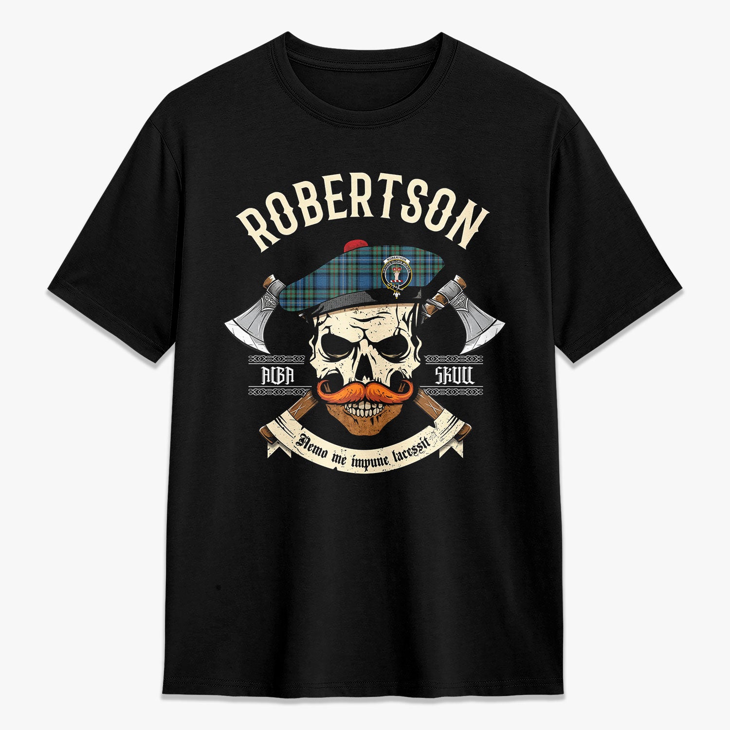 Robertson Hunting Ancient Tartan Crest 2D T-shirt - Alba Skull Style,