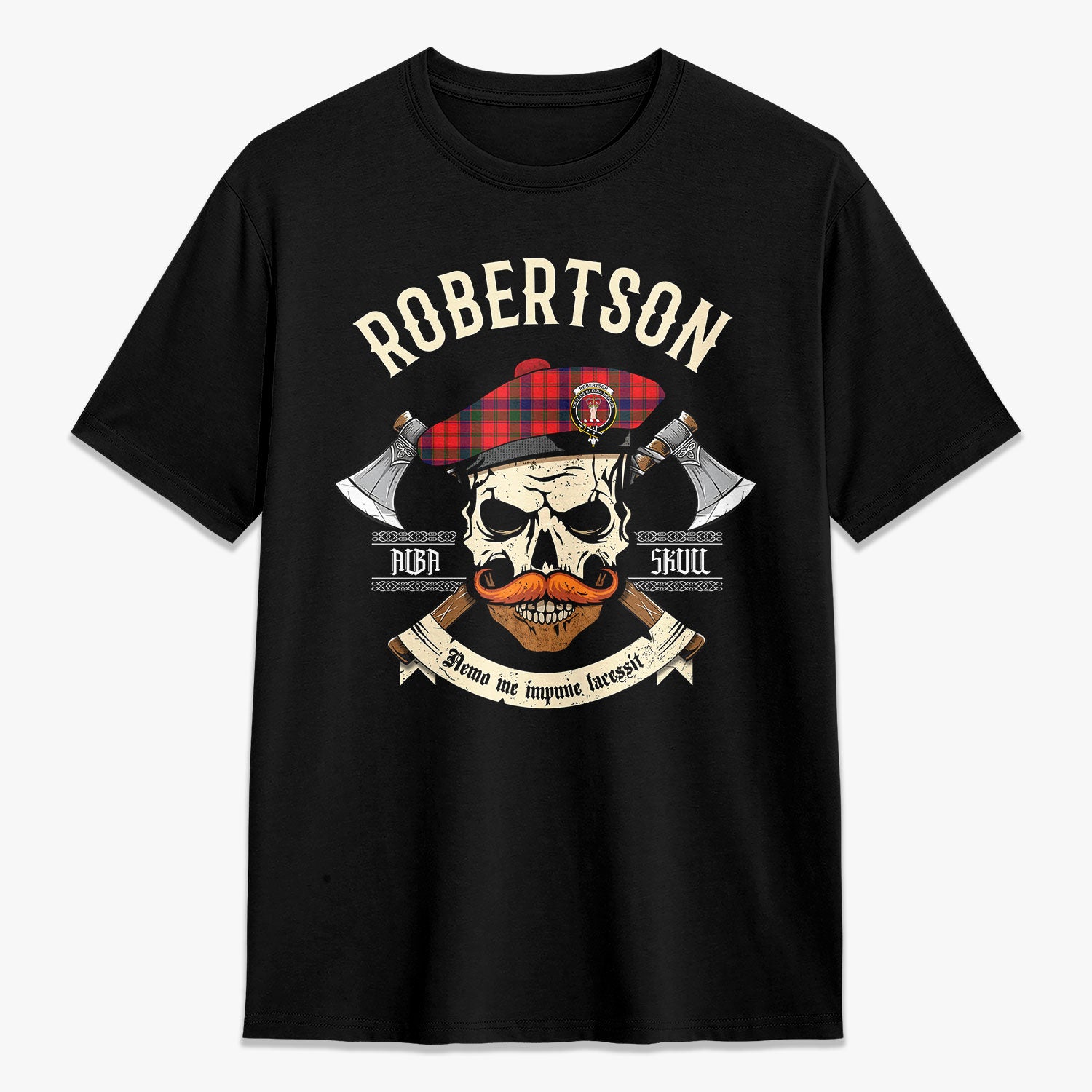 Robertson Modern Tartan Crest 2D T-shirt - Alba Skull Style,