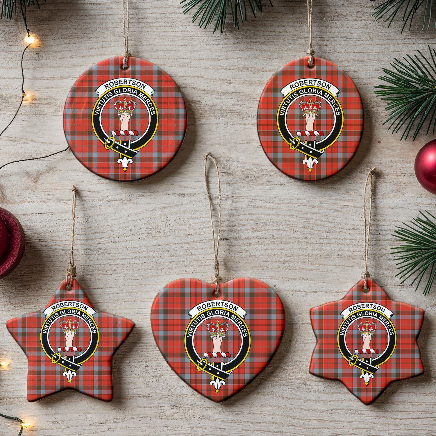 Robertson Weathered Tartan Crest Christmas Ceramic Ornament