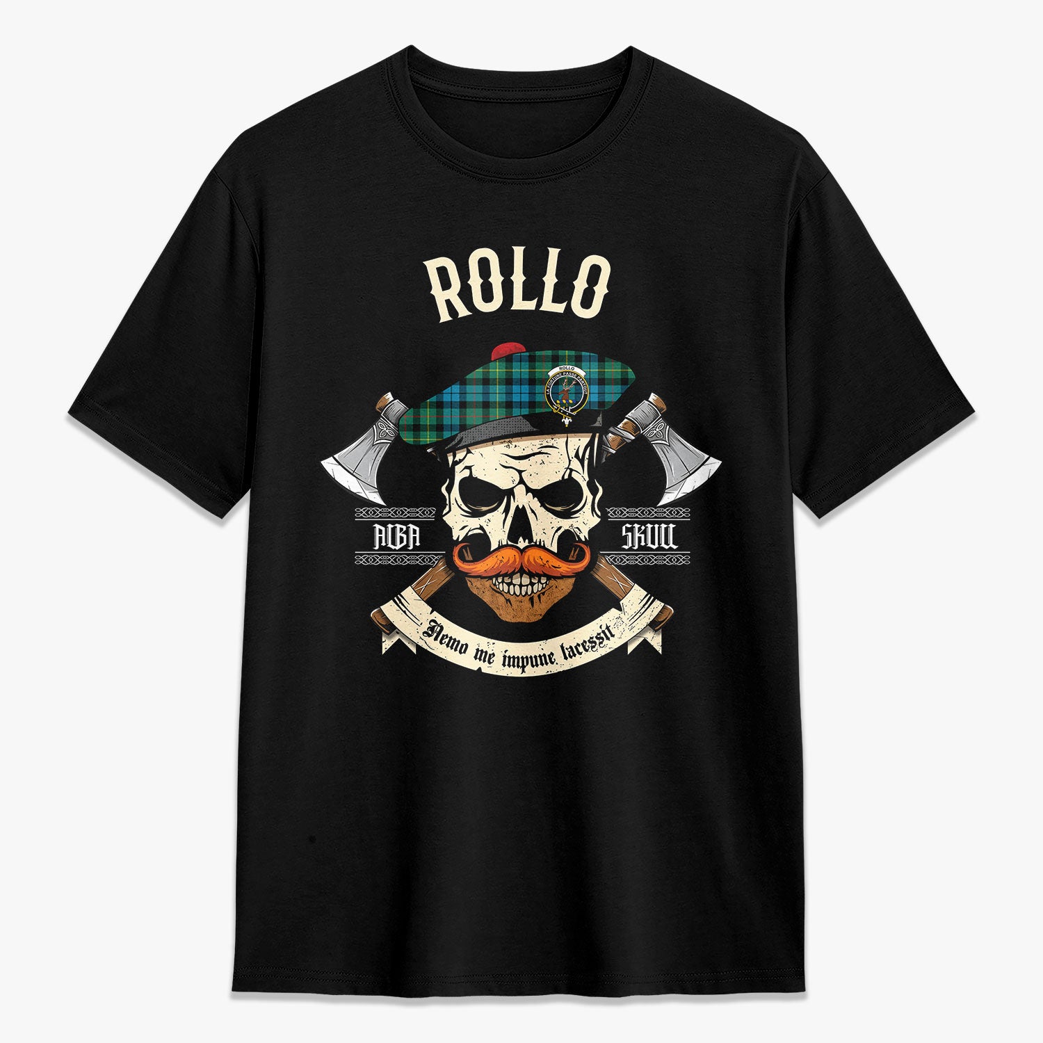 Rollo Ancient Tartan Crest 2D T-shirt - Alba Skull Style,