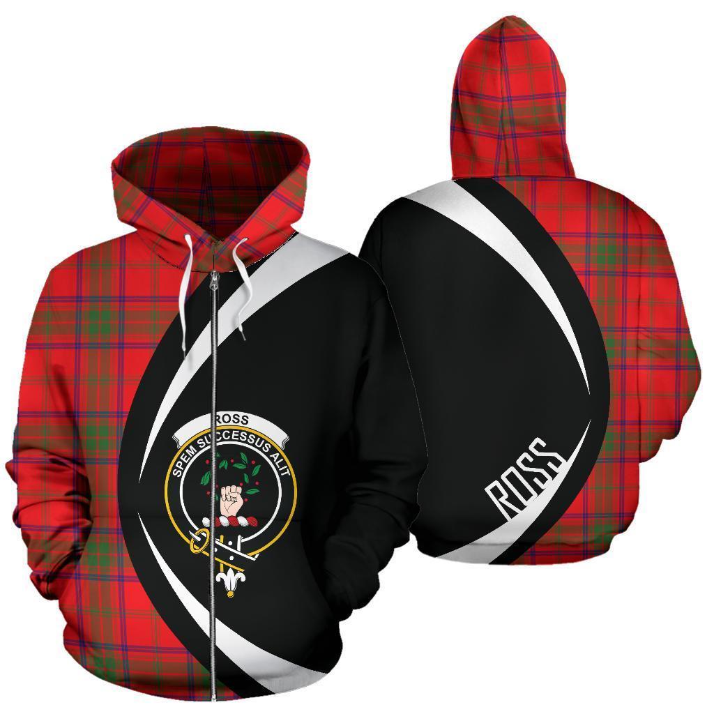 Ross Modern Tartan Crest Zipper Hoodie - Circle Style