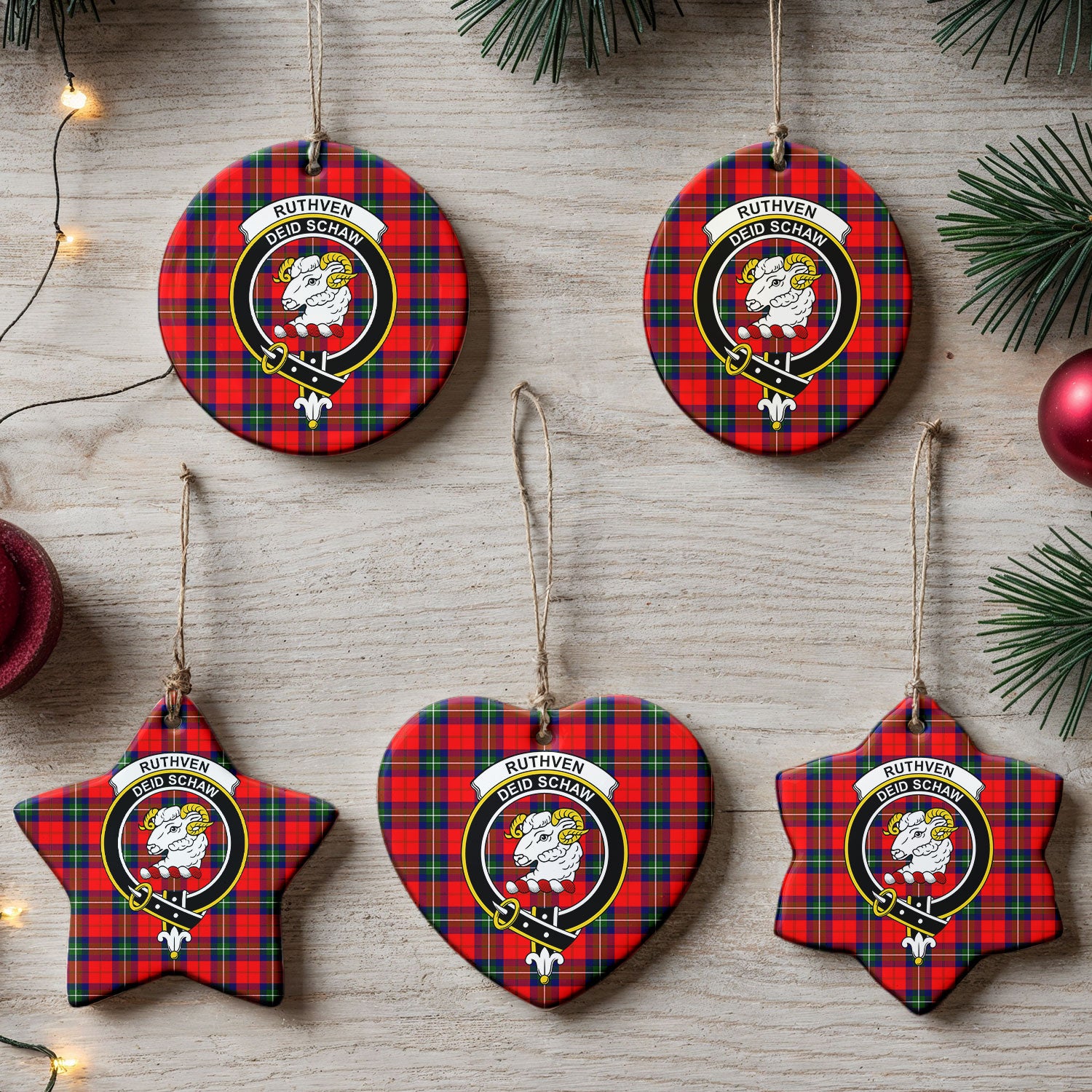 Ruthven Modern Tartan Crest Christmas Ceramic Ornament