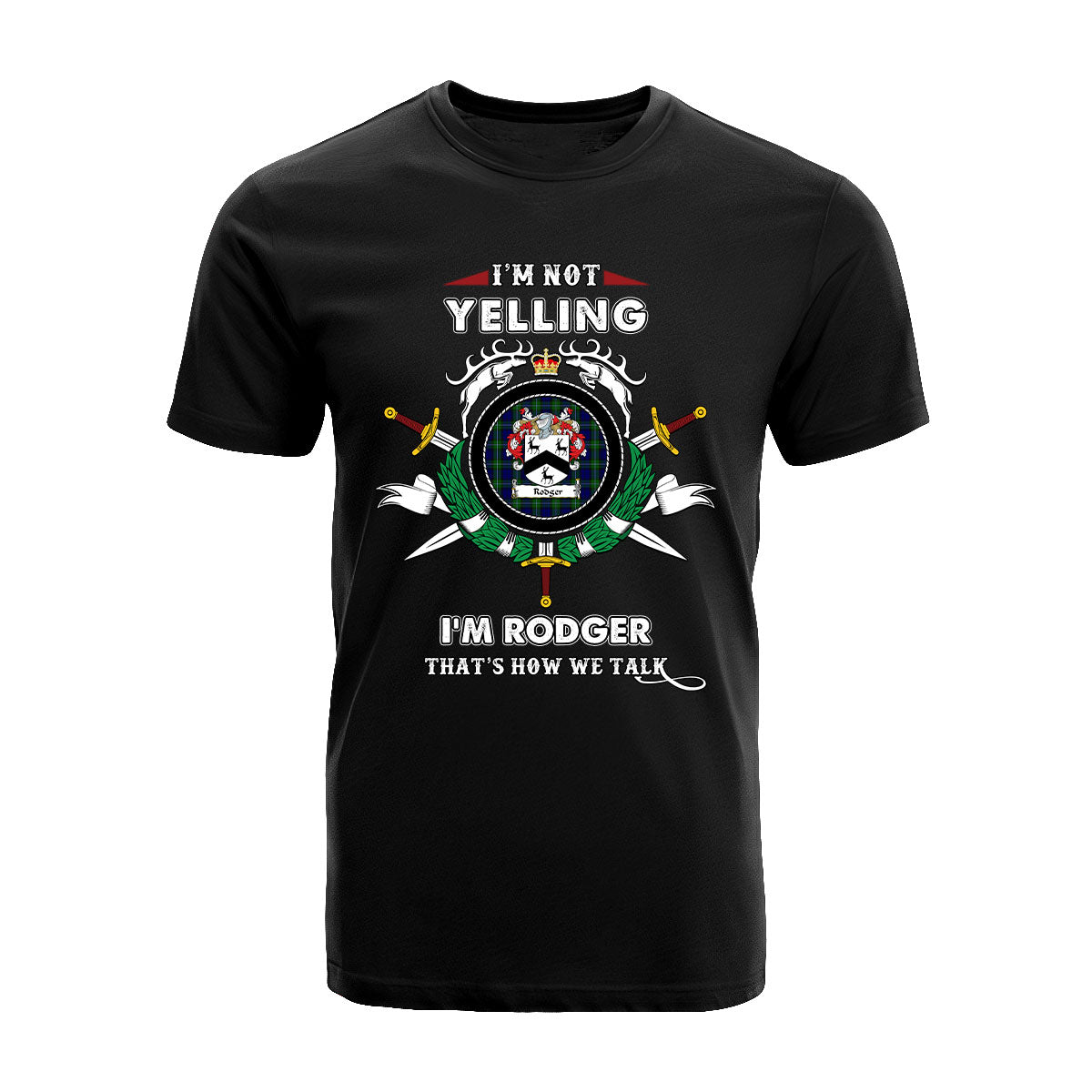 Rodger Tartan Crest T-shirt - I'm not yelling style