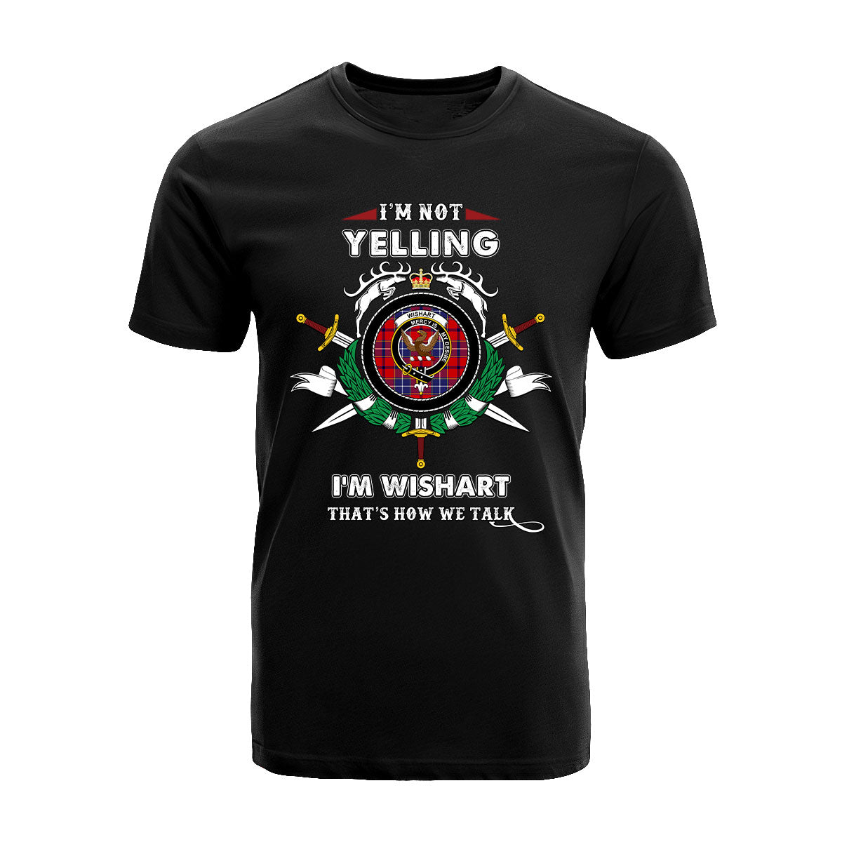 Wishart Tartan Crest T-shirt - I'm not yelling style