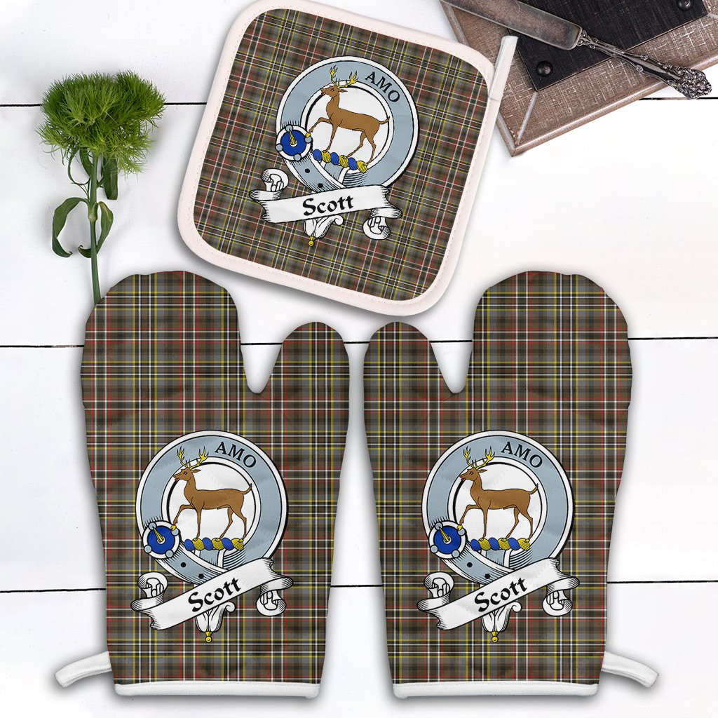 Scott Green Weathered Tartan Crest Oven Mitt And Pot Holder (2 Oven Mitts + 1 Pot Holder)