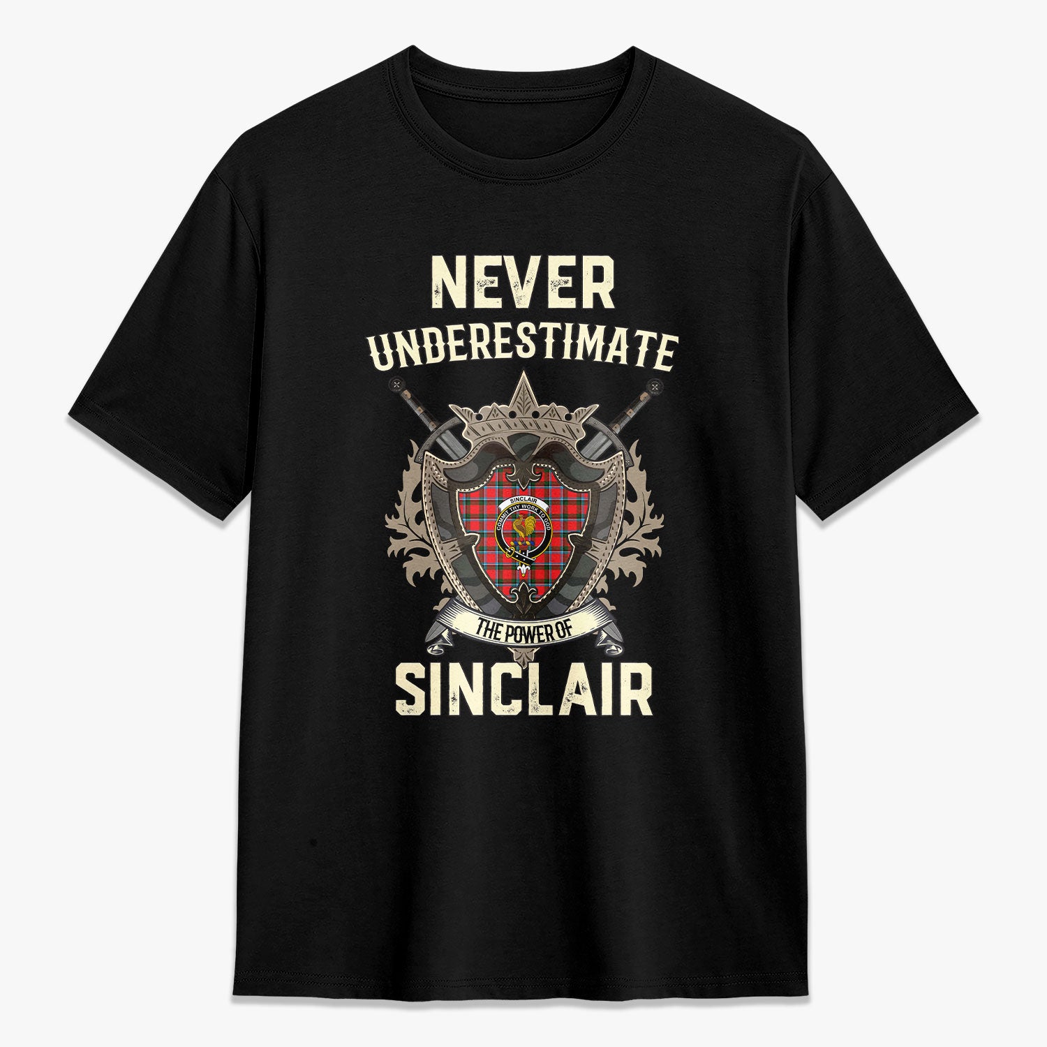 Sinclair Modern Tartan Crest 2D T-shirt - Never Underestimate Style