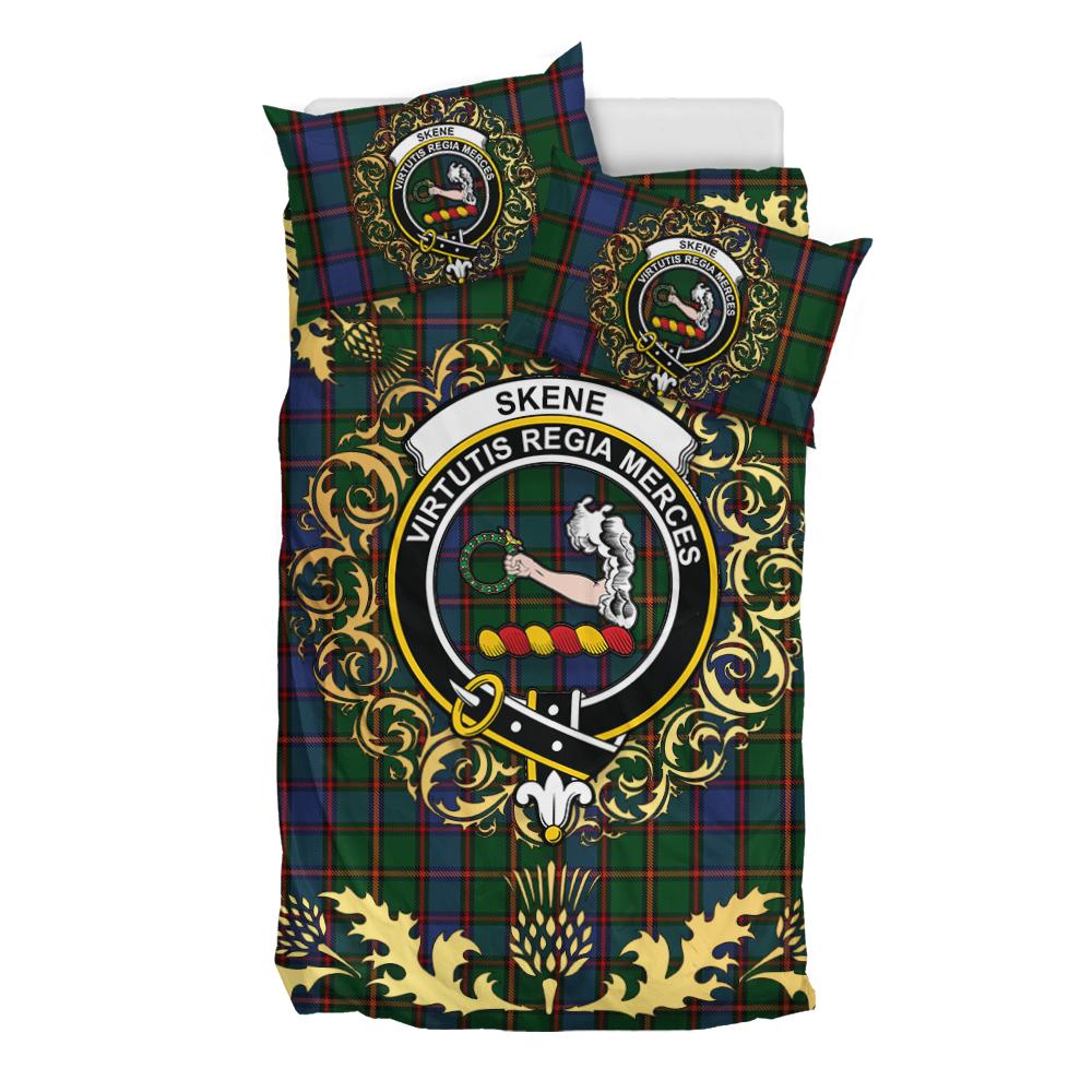 Skene 01 Tartan Crest Bedding Set - Golden Thistle Style