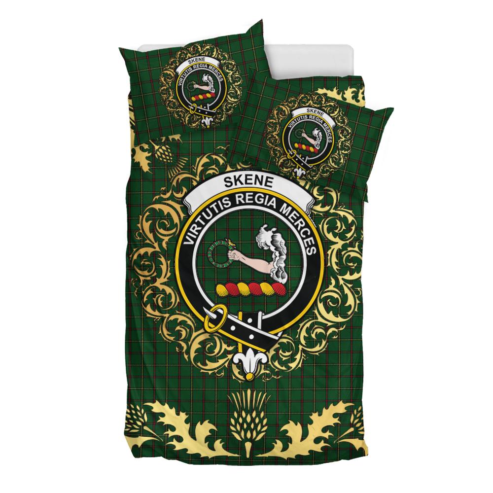 Skene or Tribe of Mar Tartan Crest Bedding Set - Golden Thistle Style
