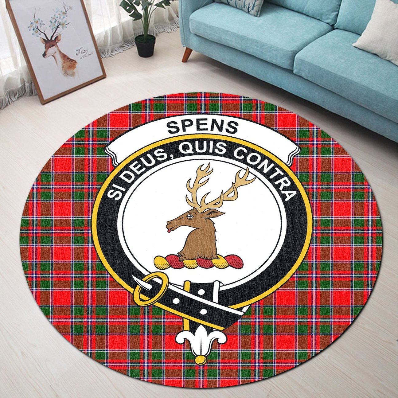 Spens Modern Tartan Crest Round Rug