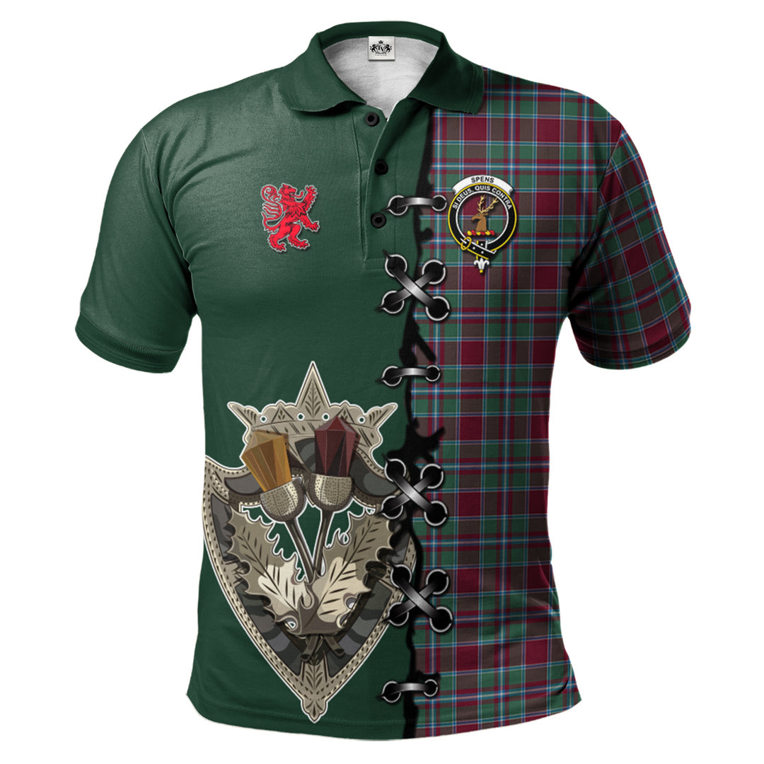 Spens (Spence) Tartan Polo Shirt - Lion Rampant And Celtic Thistle Style