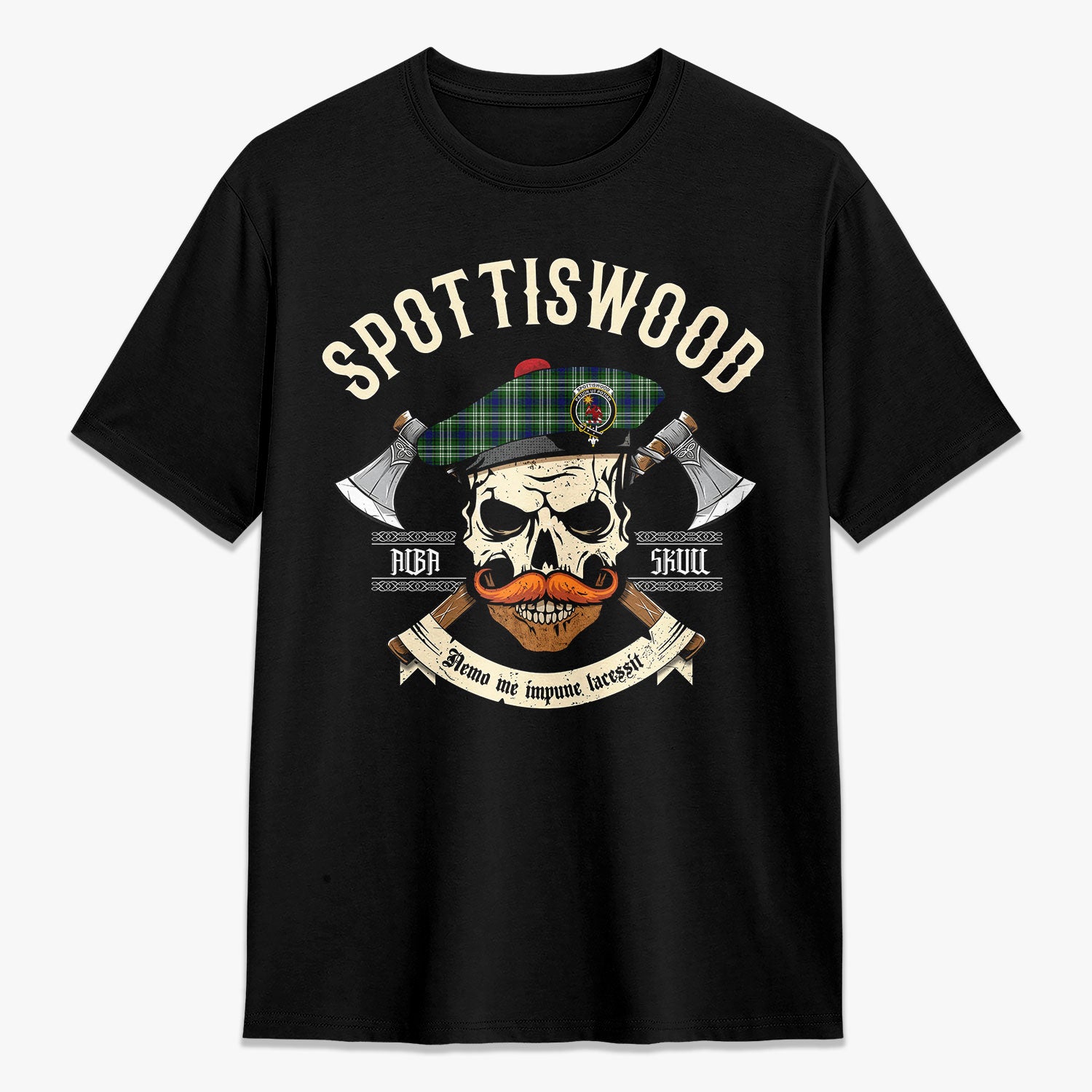 Spottiswood Tartan Crest 2D T-shirt - Alba Skull Style,