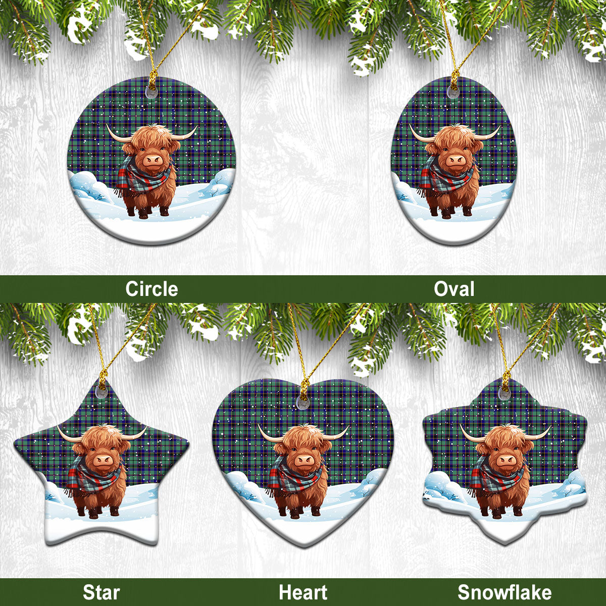 Stevenson Tartan Christmas Ceramic Ornament - Highland Cows Snow Style