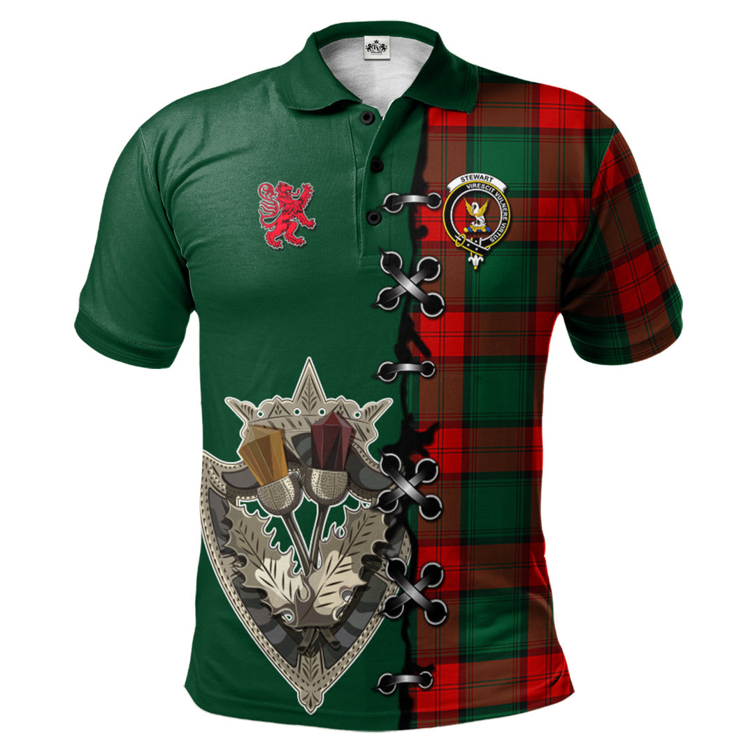 Stewart Atholl Modern Tartan Polo Shirt - Lion Rampant And Celtic Thistle Style