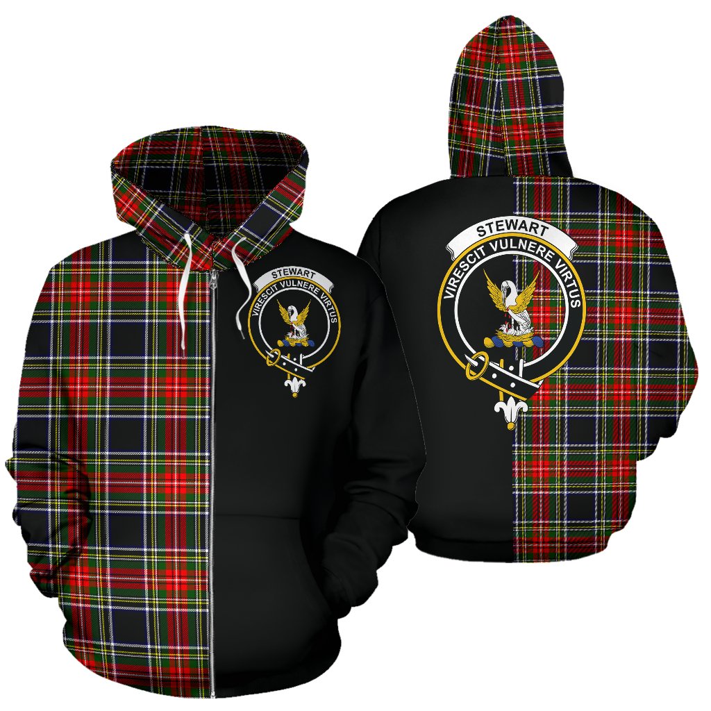 Stewart Black Tartan Crest Zipper Hoodie - Half Of Me Style