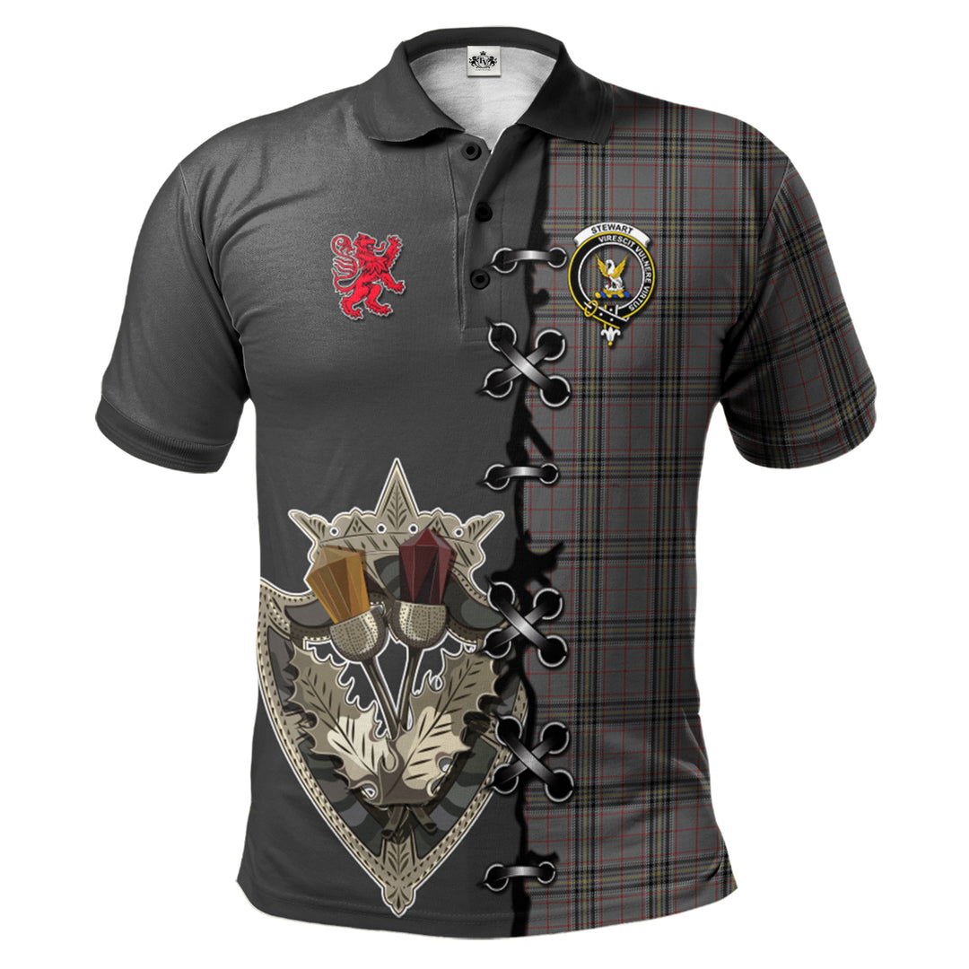 Stewart Grey Tartan Polo Shirt - Lion Rampant And Celtic Thistle Style