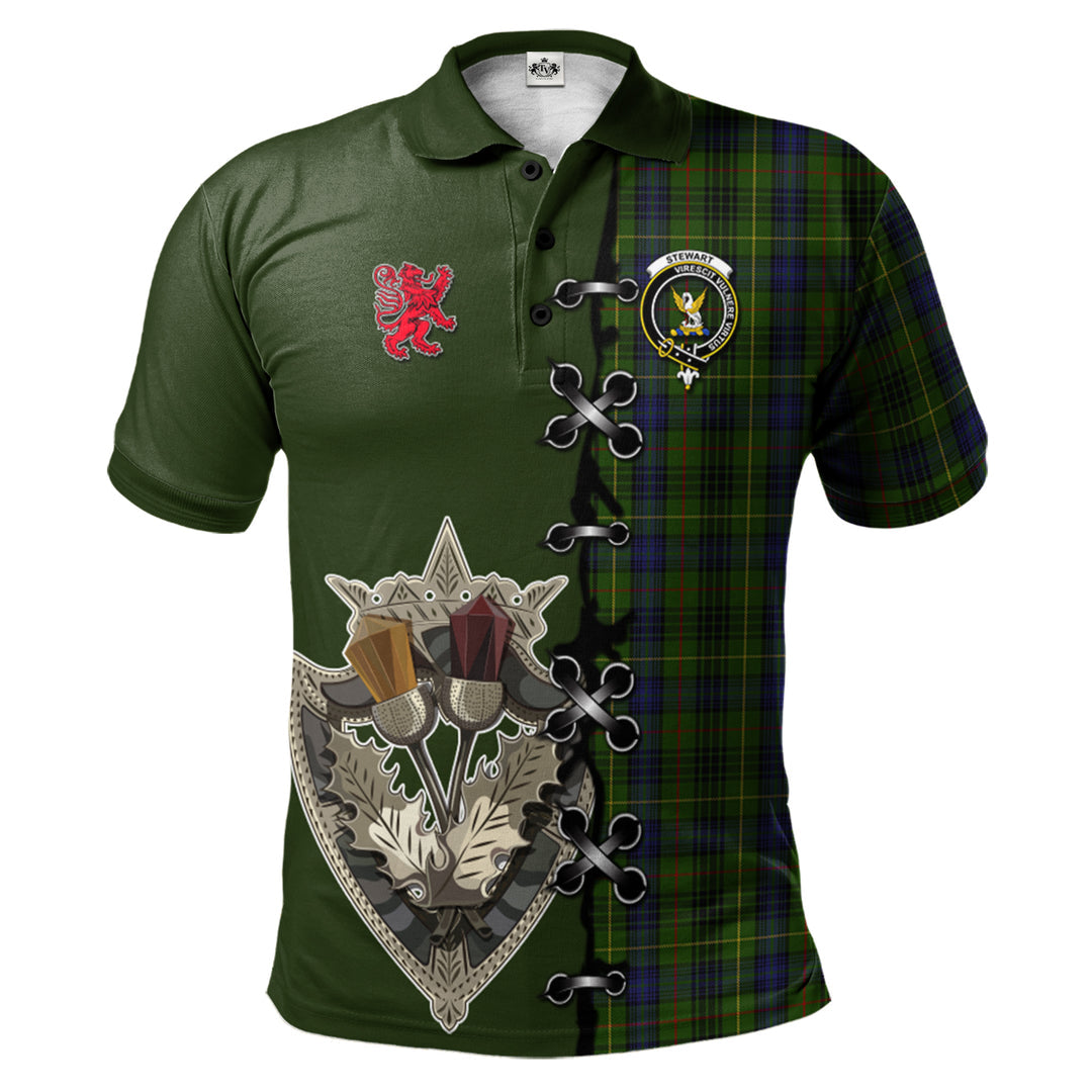Stewart Hunting Tartan Polo Shirt - Lion Rampant And Celtic Thistle Style