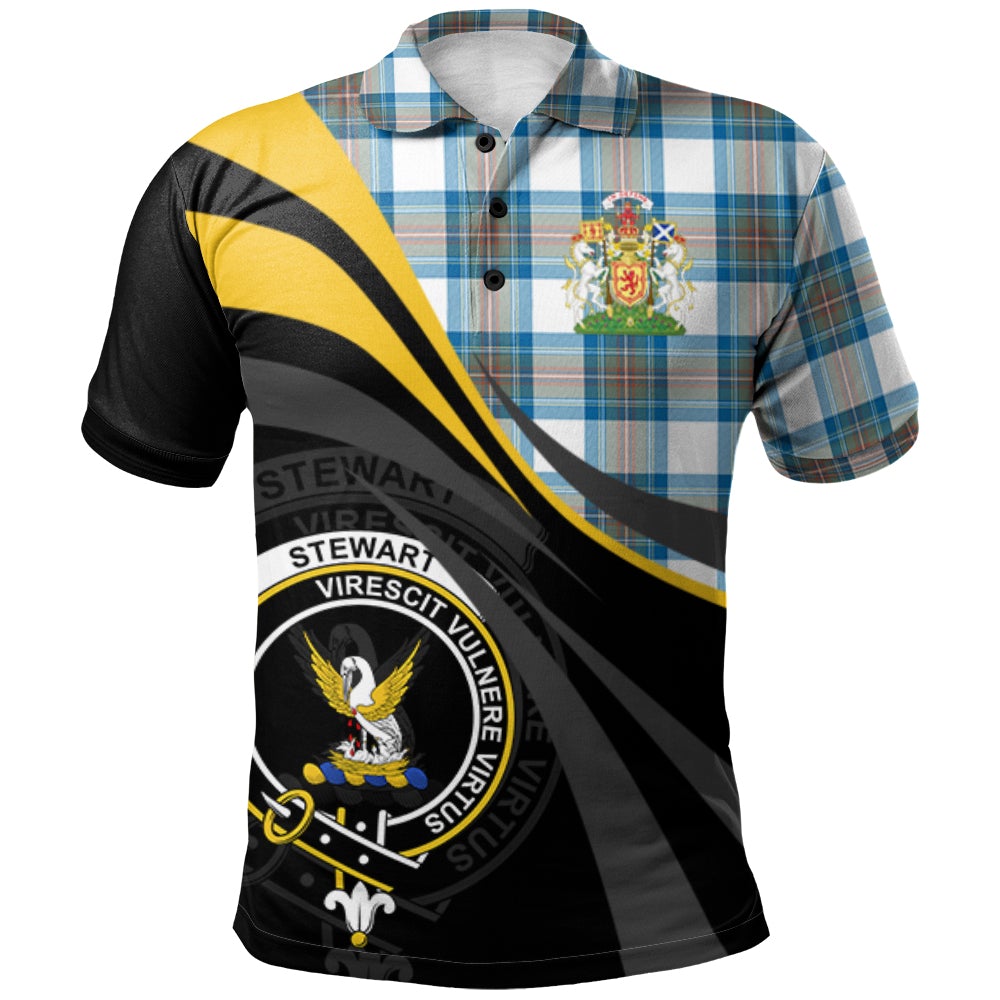 Stewart Muted Blue Tartan Polo Shirt - Royal Coat Of Arms Style