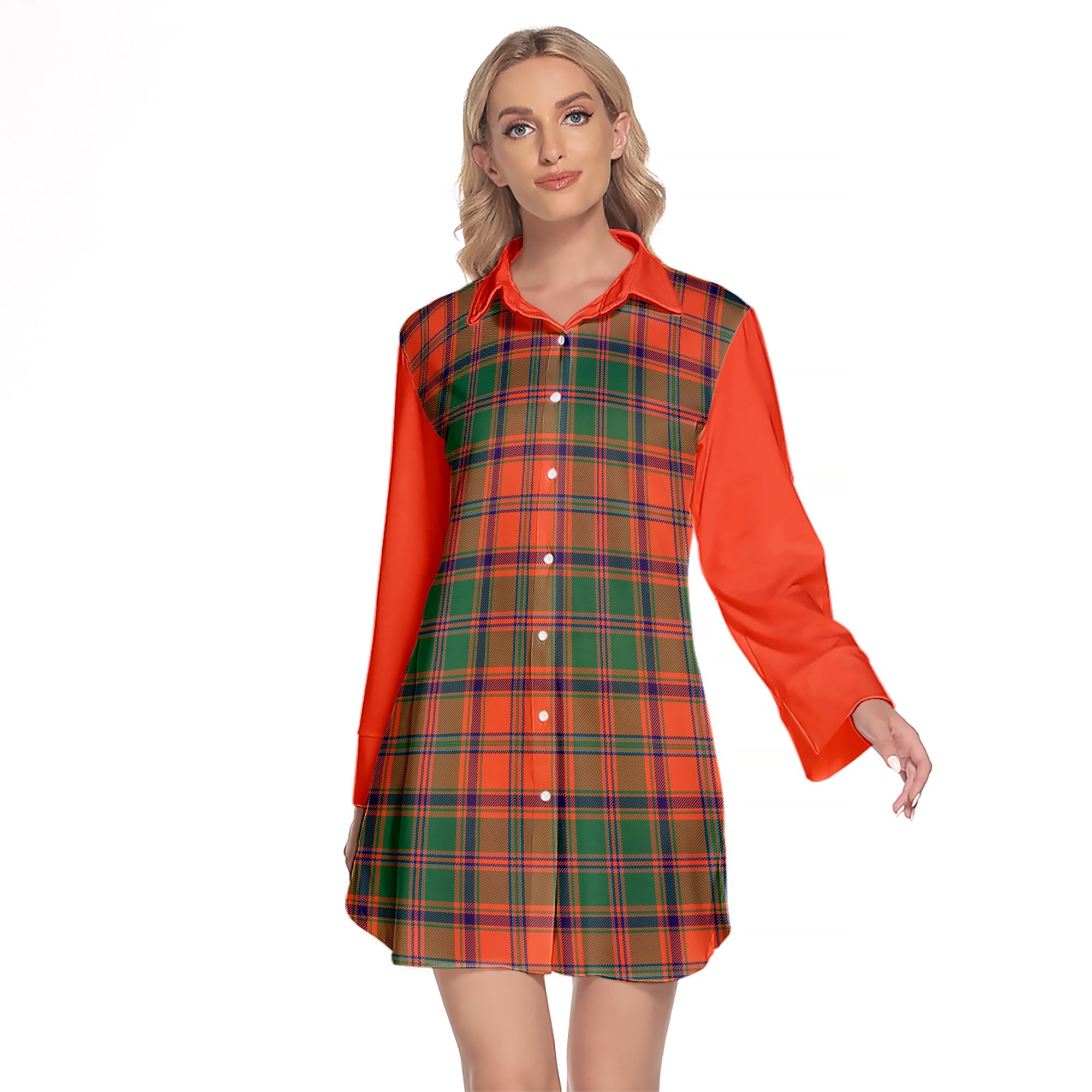 Stewart Of Appin Ancient Tartan Women's Lapel Shirt Dress With Long Sleeve