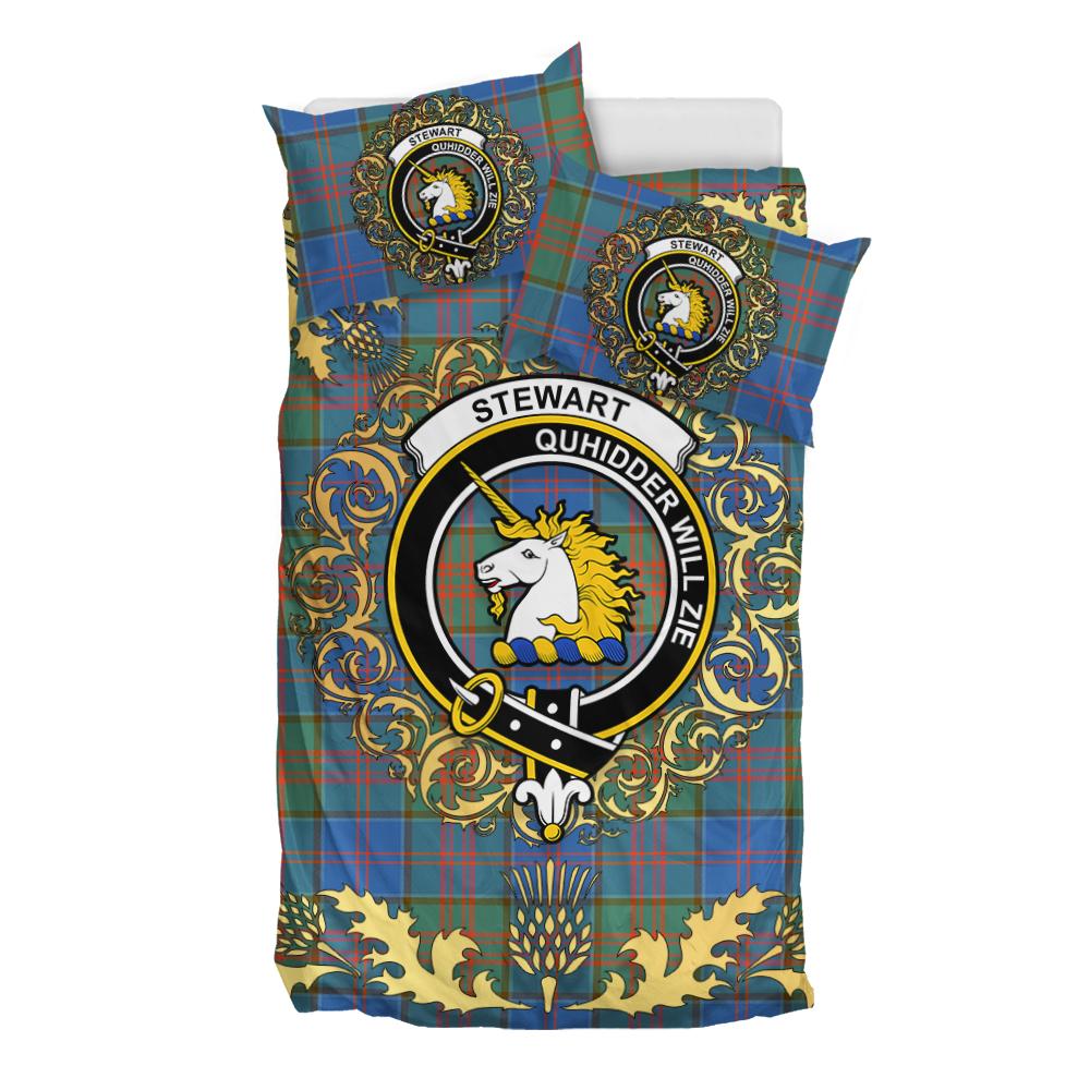 Stewart of Appin Hunting Ancient Tartan Crest Bedding Set - Golden Thistle Style