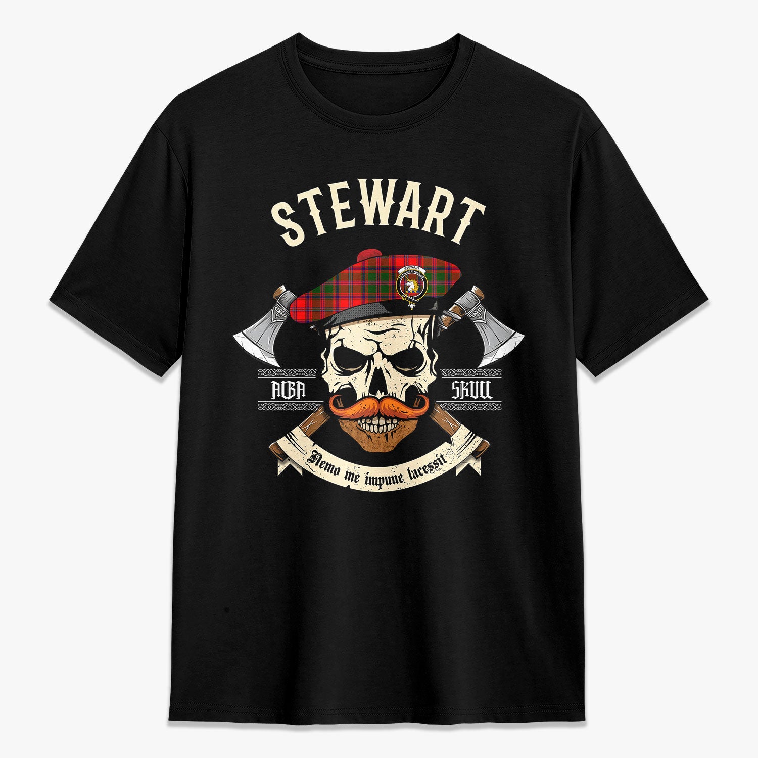 Stewart of Appin Modern Tartan Crest 2D T-shirt - Alba Skull Style,
