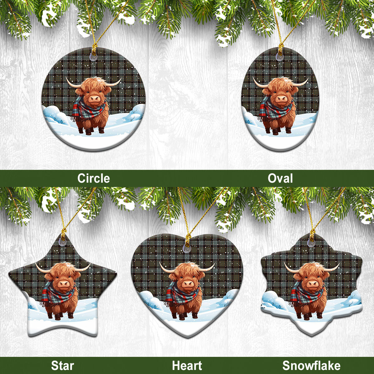 Stewart Old Weathered Tartan Christmas Ceramic Ornament - Highland Cows Snow Style