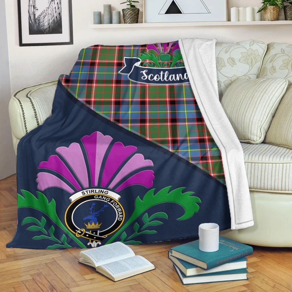 Stirling (of Cadder-Present Chief) Tartan Crest Premium Blanket - Thistle Style