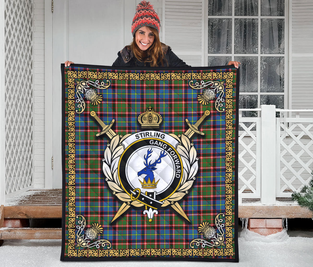 Stirling (of Cadder-Present Chief) Tartan Crest Premium Quilt - Celtic Thistle Style