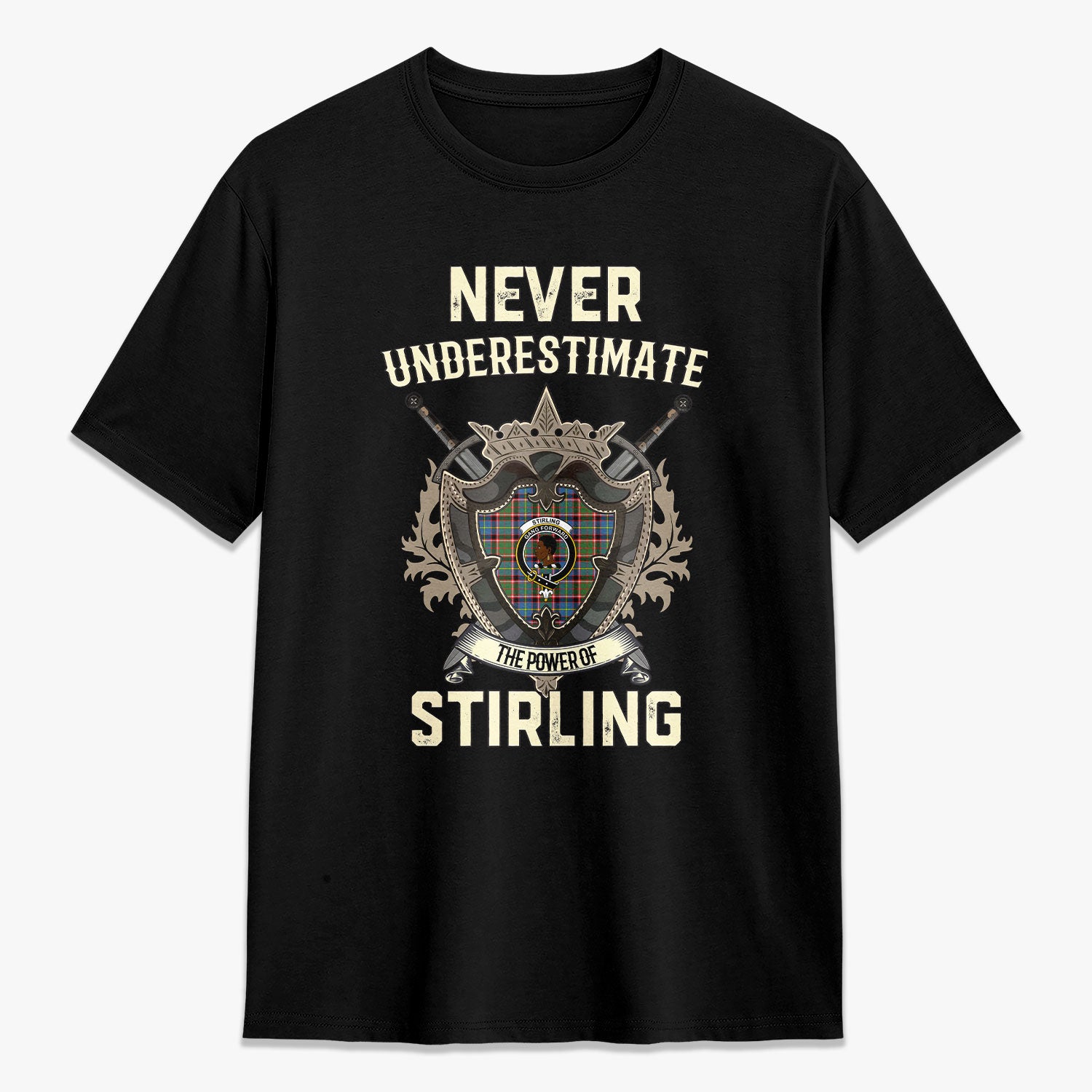 Stirling (of Keir) Tartan Crest 2D T-shirt - Never Underestimate Style