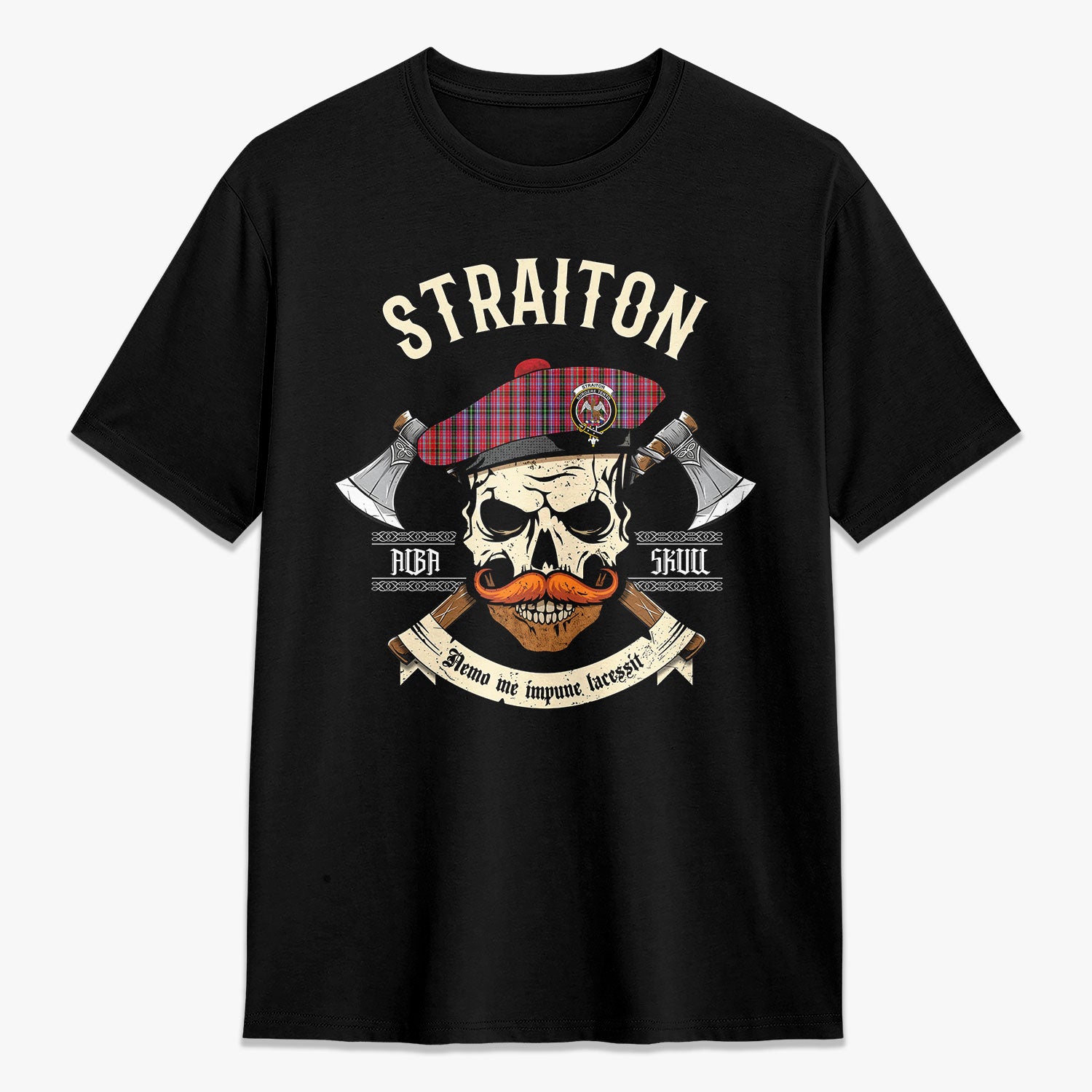 Straiton Tartan Crest 2D T-shirt - Alba Skull Style,