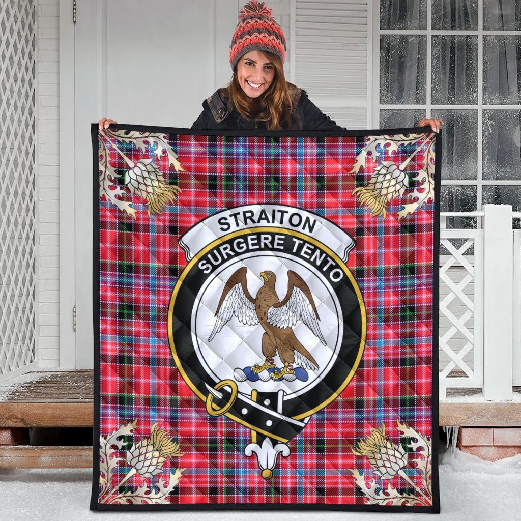 Straiton Tartan Crest Premium Quilt - Gold Thistle Style