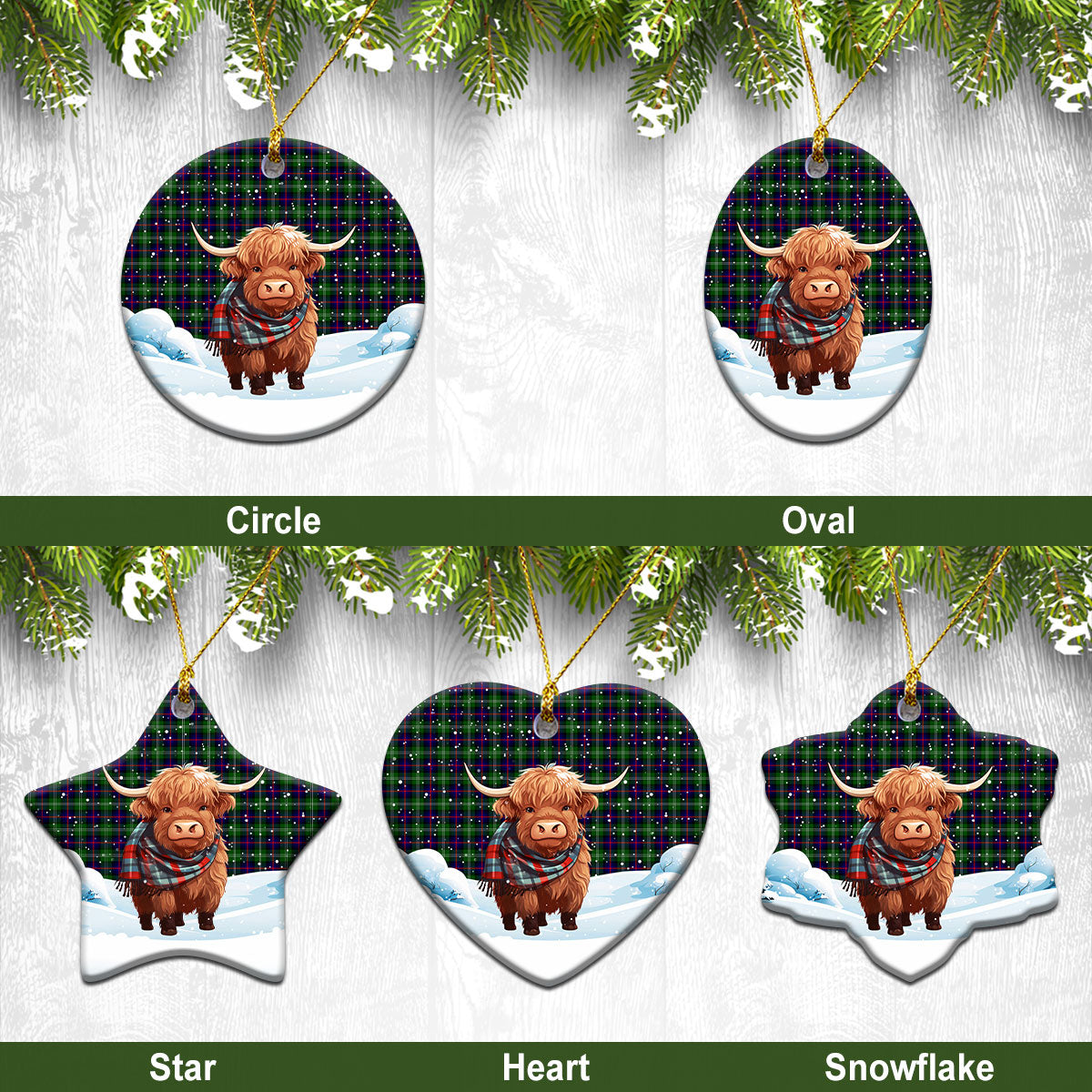Sutherland Modern Tartan Christmas Ceramic Ornament - Highland Cows Snow Style