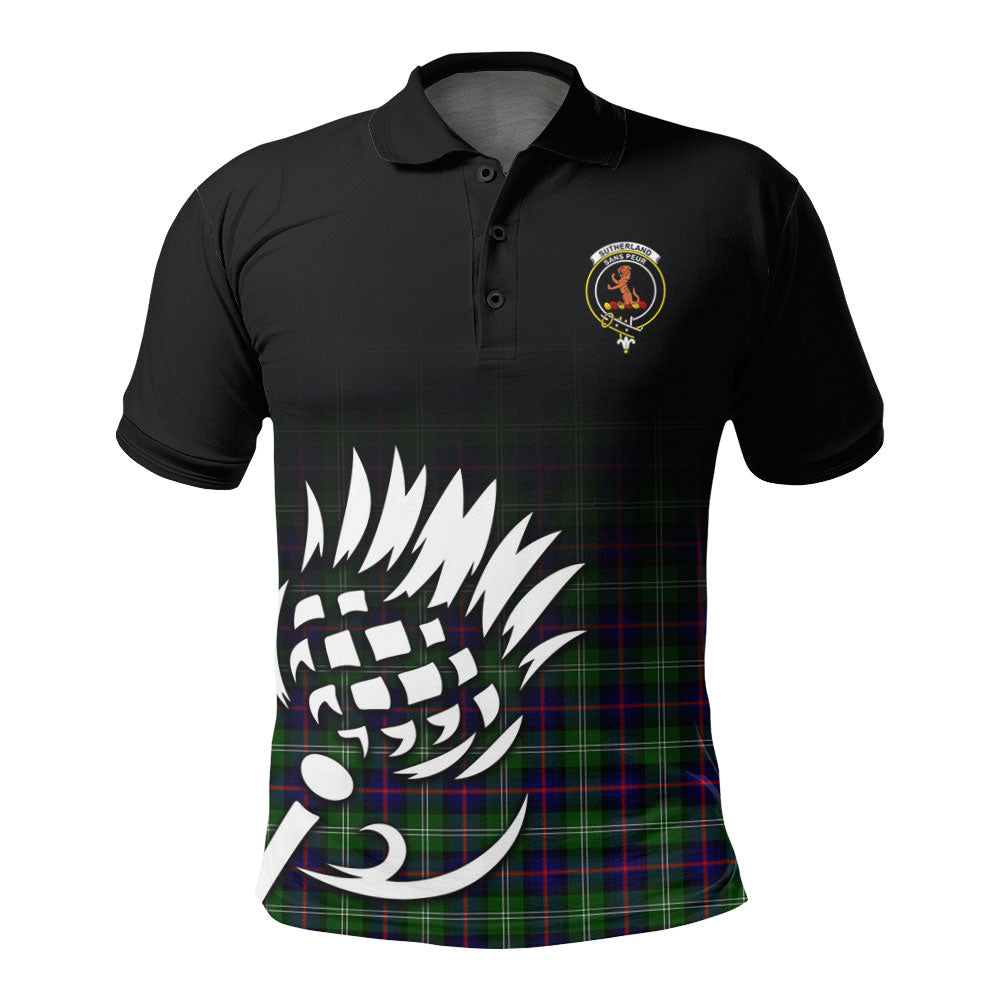 Sutherland Modern Tartan Crest Polo Shirt - Thistle Black Style