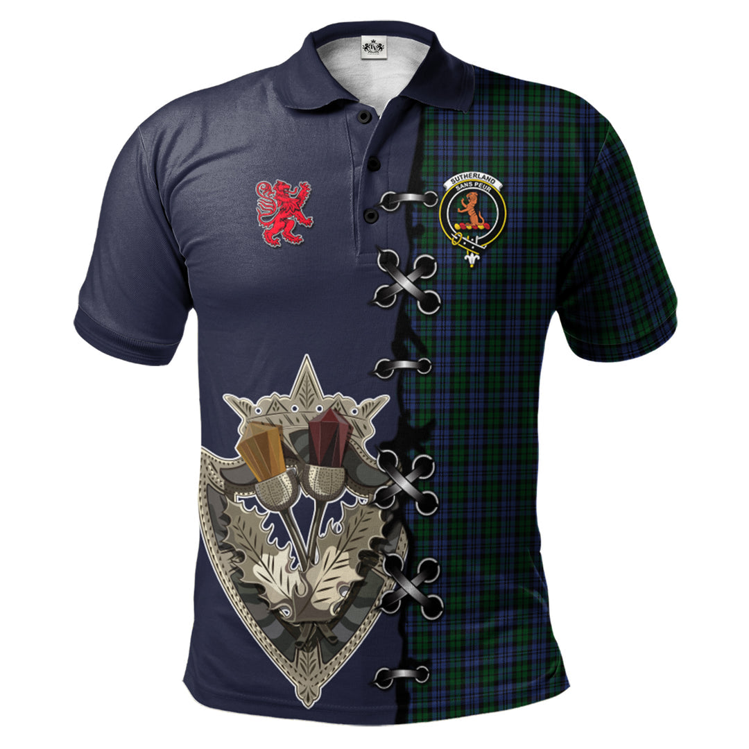 Sutherland Tartan Polo Shirt - Lion Rampant And Celtic Thistle Style