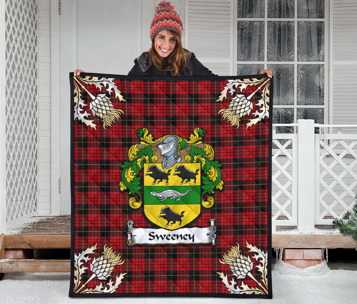 Sweeney Tartan Crest Premium Quilt - Gold Thistle Style