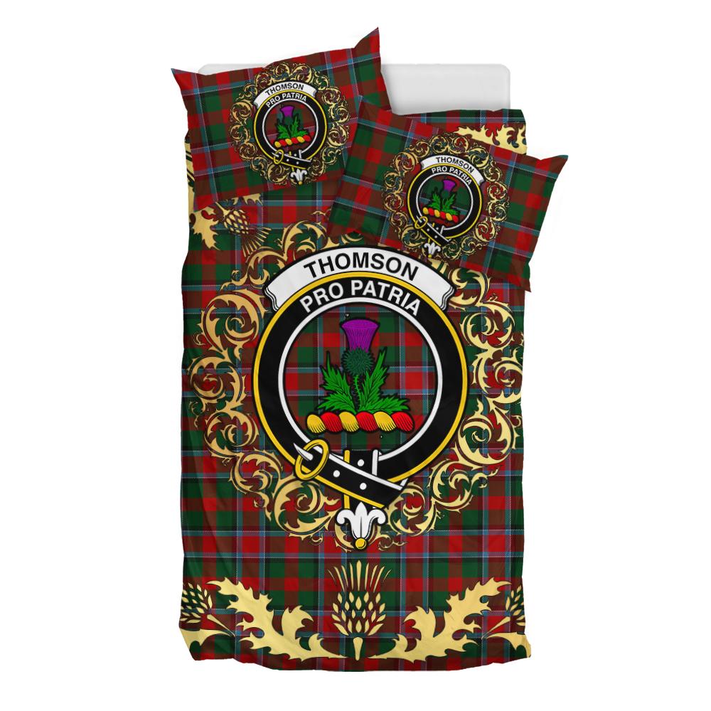 Thompson (Mackinlay) Tartan Crest Bedding Set - Golden Thistle Style