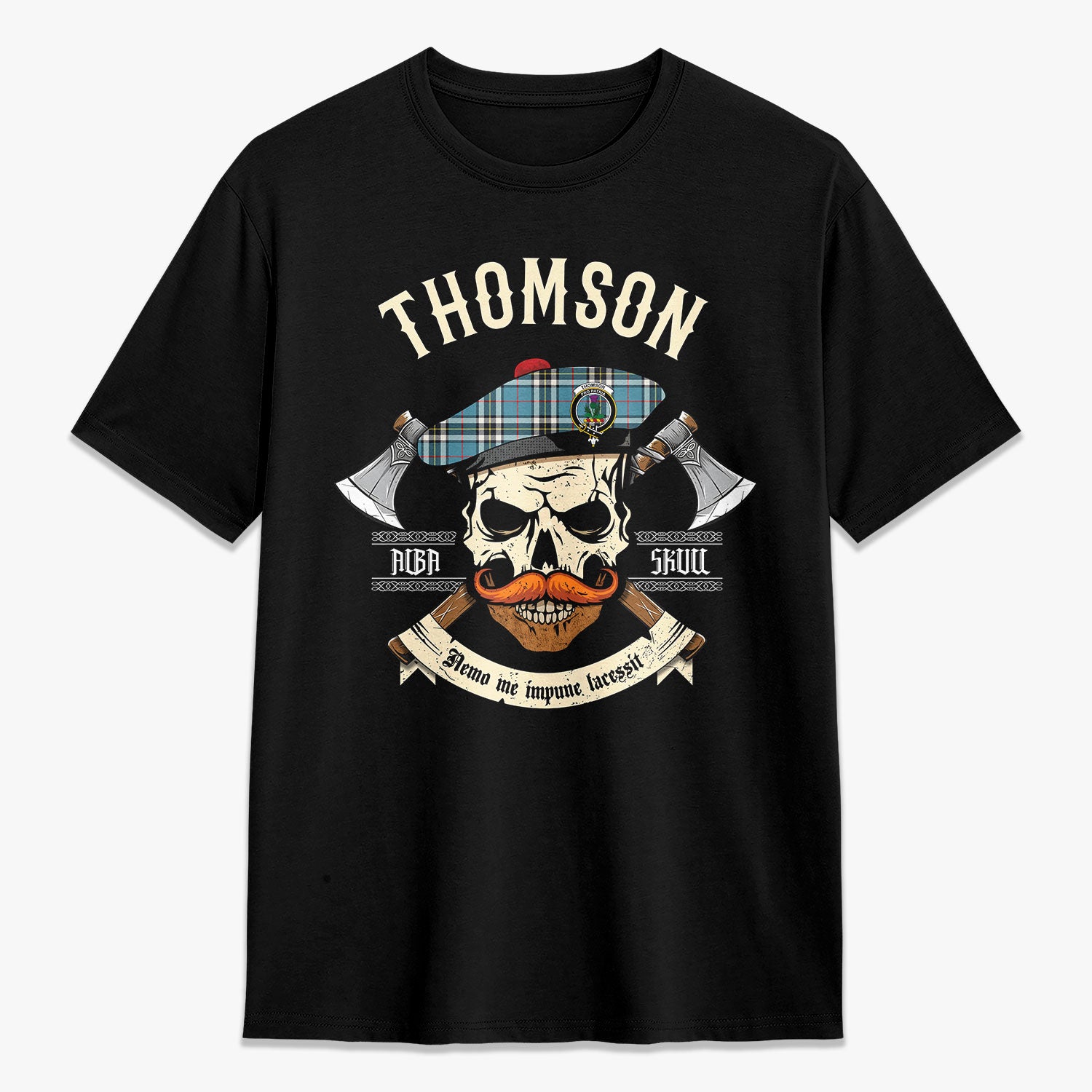 Thomson Blue Tartan Crest 2D T-shirt - Alba Skull Style,