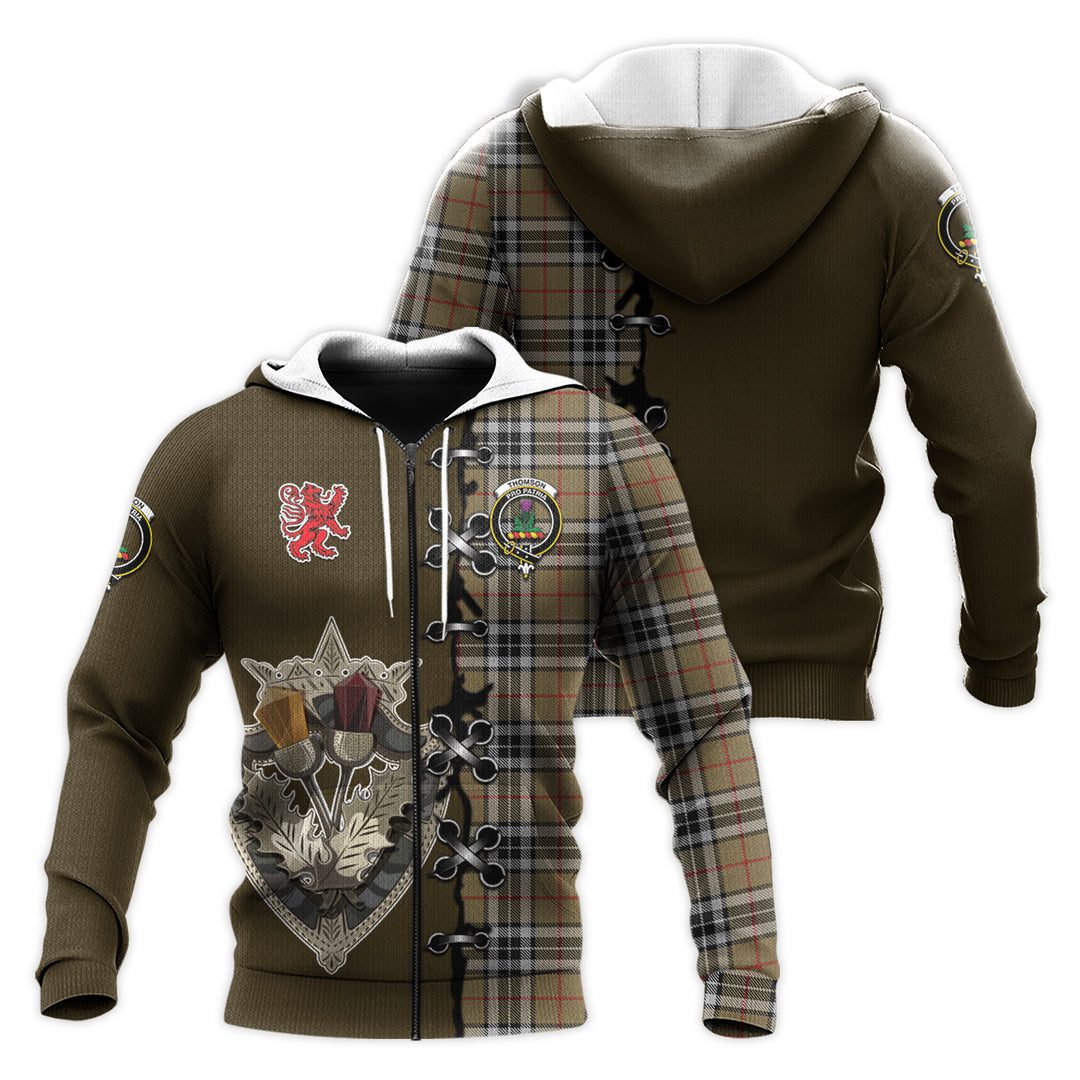Thomson Camel Tartan Hoodie - Lion Rampant And Celtic Thistle Style