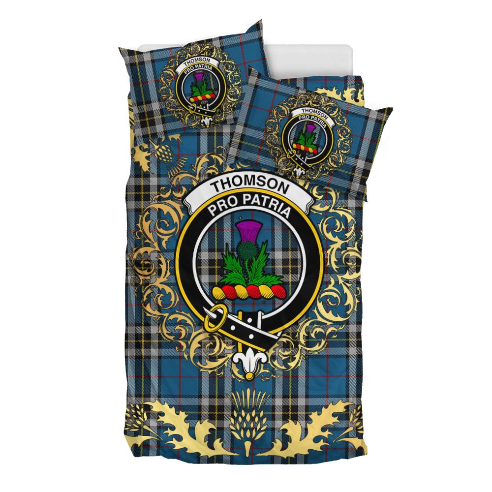 Thomson Dress Blue Tartan Crest Bedding Set - Golden Thistle Style