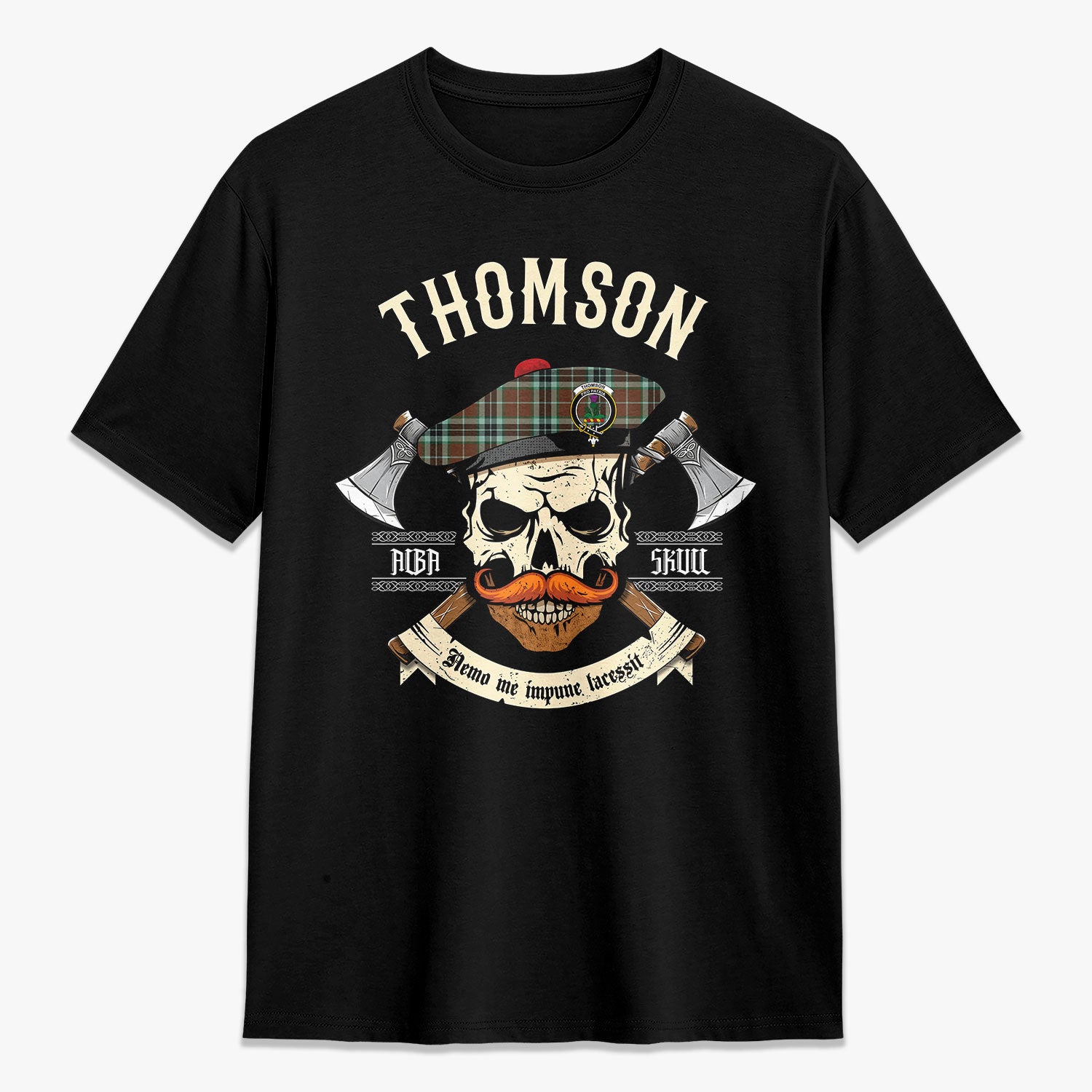 Thomson Hunting Modern Tartan Crest 2D T-shirt - Alba Skull Style,