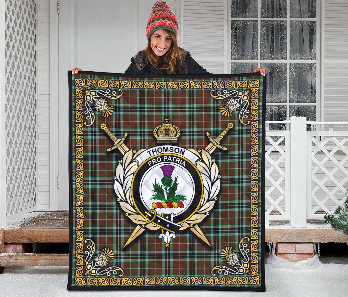 Thomson Hunting Modern Tartan Crest Premium Quilt - Celtic Thistle Style