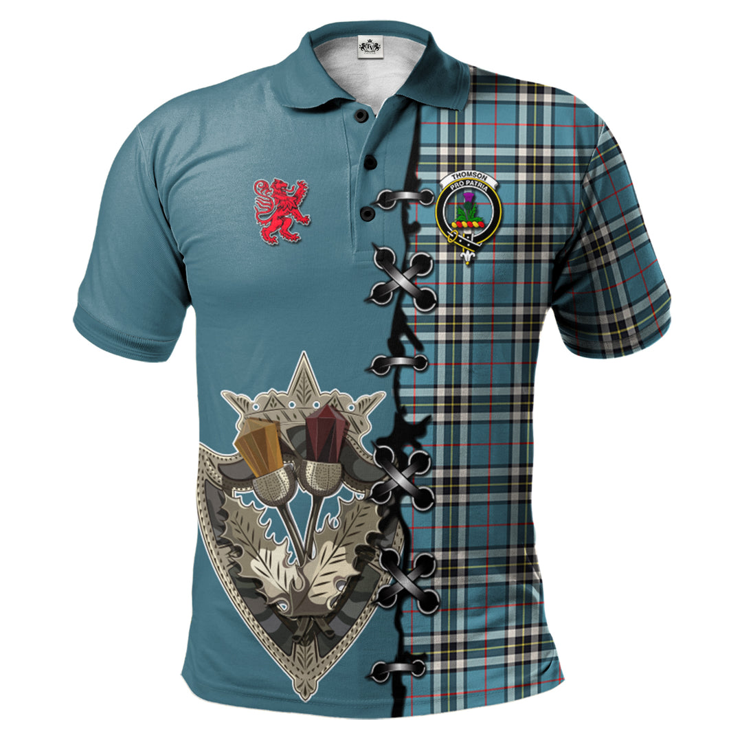 Thomson Tartan Polo Shirt - Lion Rampant And Celtic Thistle Style