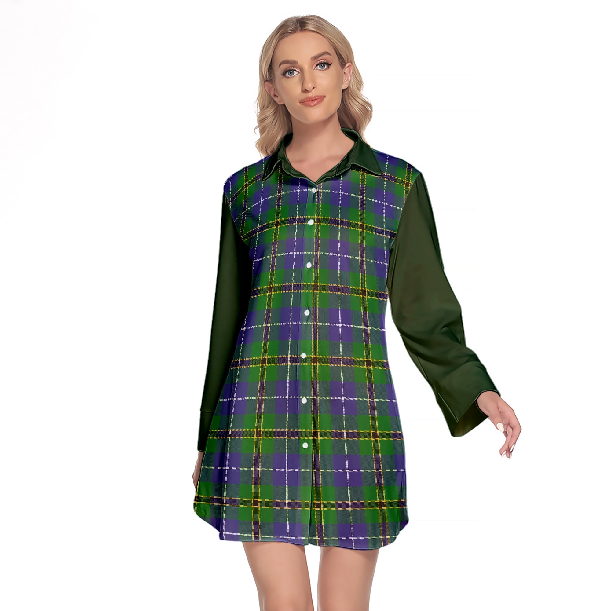 Turnbull Hunting Tartan Women's Lapel Shirt Dress With Long Sleeve