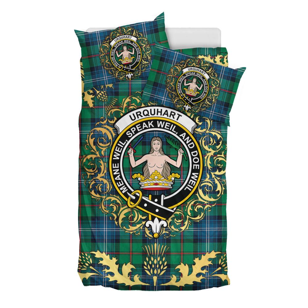 Urquhart Ancient Tartan Crest Bedding Set - Golden Thistle Style