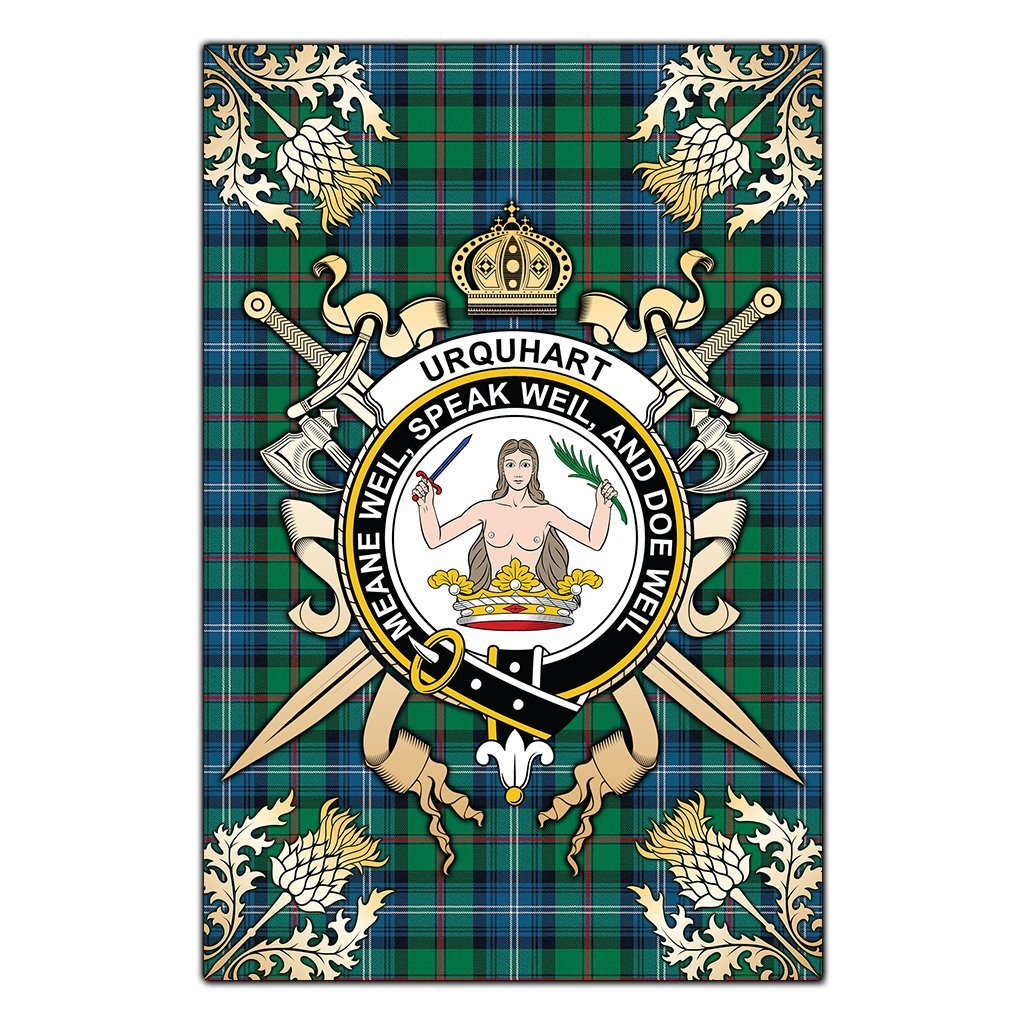 Urquhart Ancient Tartan Crest Black Garden Flag - Gold Thistle Style